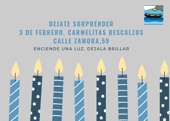 Bajo el lema: “Déjate sorprender. Enciende una luz, déjala brillar”, las comunidades “Fe y Luz” de Salamanca celebran este domingo 3 de febrero su “Fiesta de la Luz” con una eucaristía a las 13.00 del mediodía en la iglesia de los Carmelitas Descalzos de Salamanca.