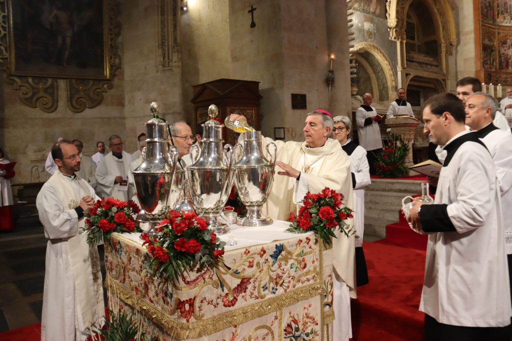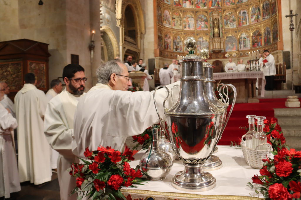 La Catedral Vieja de Salamanca acoge este Miércoles Santo, 27 de marzo, a las 12:00 horas, la Misa Crismal, una celebración que será presidida por el obispo, Mons. José Luis Retana, y concelebrada por los presbíteros diocesanos, que renovarán sus promesas sacerdotales.