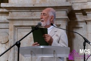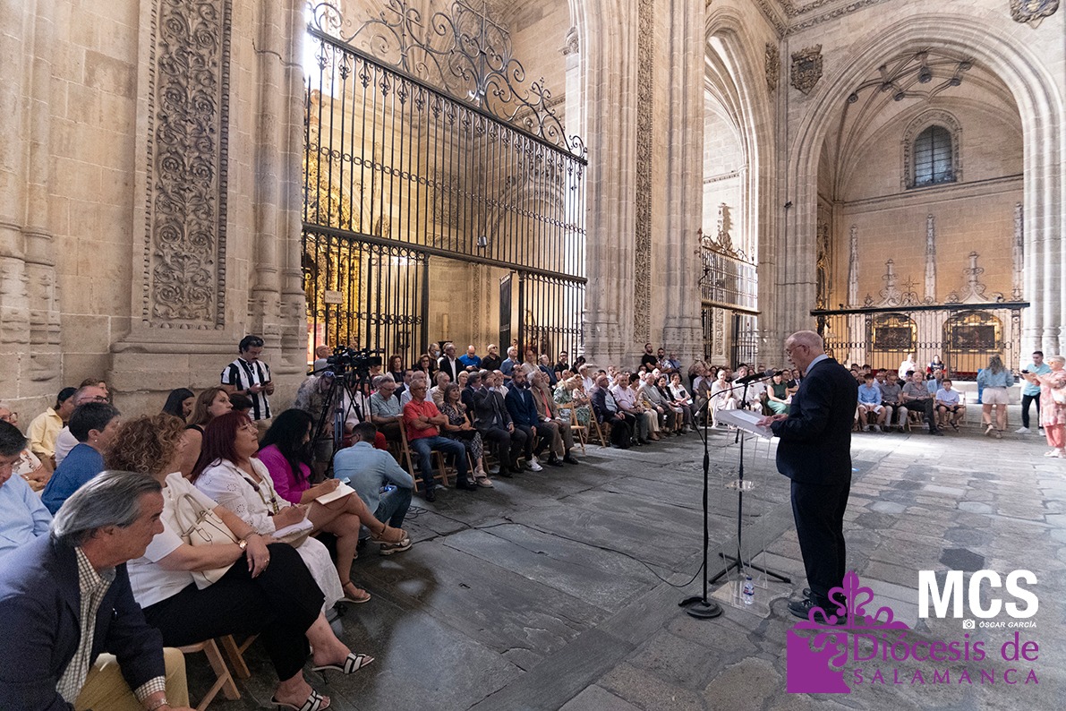 El acto de inauguración de esta “fiesta de gratitud”, como la calificó el deán del cabildo, Antonio Matilla, tuvo lugar el pasado 16 de julio en el trasaltar, donde el artista estuvo arropado por su familia, amigos y autoridades eclesiásticas y civiles. En su intervención, Matilla recordó a Daniel Sánchez, quien “se atrevió a soñar con un diálogo entre nuestra Catedral y el arte religioso contemporáneo“, y agradeció a su familia “por financiar este sueño”. El deán también expresó su aprecio a Florencio Maíllo, por abordar “con tanta pasión y maestría la realización de esta obra magnífica” y por plasmar en ella “tu alma creyente”.