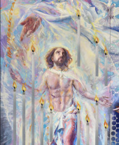 Y respecto a la escena de la Resurrección, Maíllo representa el paso de la cruz a la luz, con la imagen del Resucitado como “protagonista victorioso” y un “bosque de 14 cirios encendidos”, que simbolizan “a los creyentes que han resucitado con él”, a modo de tenebrario, y donde Cristo “es la vela quince”.