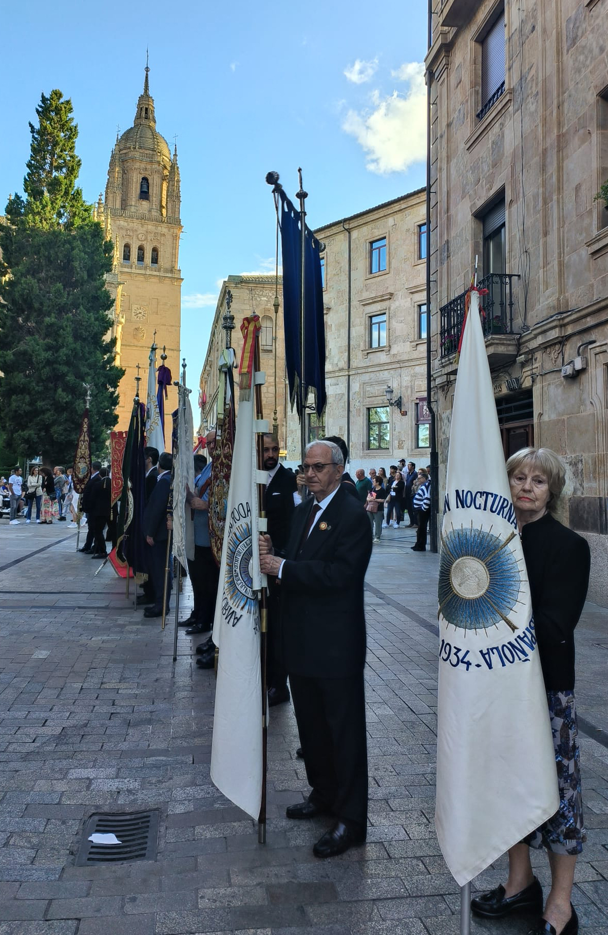 La Adoración Nocturna Femenina (ANFE) de Salamanca celebró su primera vigilia en la noche del 31 de diciembre de 1935, en la iglesia de las Jesuitinas de la calle Zamora, y tras 89 años de historia han cesado su actividad por falta de relevo. Una decisión que tomaron en su última asamblea, celebrada el pasado 4 de mayo en la Casa de la Iglesia, aunque reconocen que les ha costado bastante dar este paso. Así lo detallan Pepita Albarrán y Pepita Rodríguez, que llevan en esta asociación pública de fieles una gran parte de su vida (39 y 35 años respectivamente), en especial, la primera de ellas, ya que sus padres fueron adoradores en otros movimientos, y cogida sobre los hombros de su madre ya recuerda más de una vigilia nocturna.