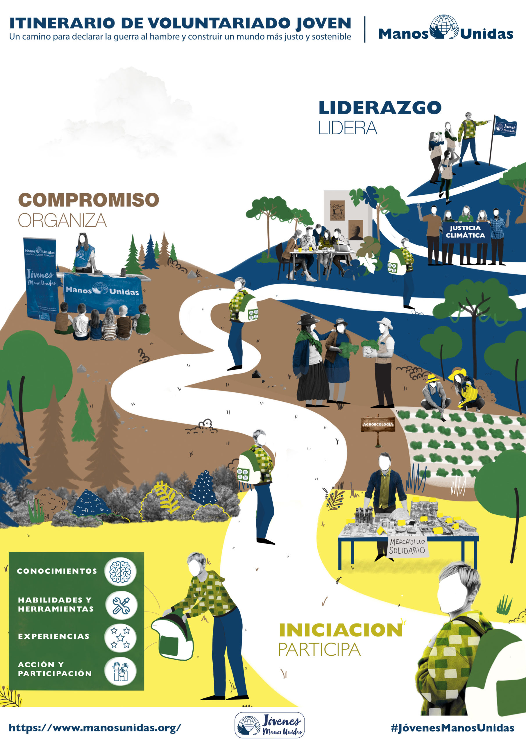 Dirigido a jóvenes de 18 a 35 años, el proyecto invita a aquellos preocupados por la pobreza y la desigualdad a sumarse al cambio. Como recoge el cartel promocional de Manos Unidas Salamanca: “Si te inquieta la pobreza, el hambre y la desigualdad y no quieres mirar para otro lado. ¡Haz algo! ¡Comprométete!”. Y ofrece a los jóvenes un espacio para “formarse, participar y crecer junto a otros”, a través de actividades virtuales y presenciales, a nivel local y nacional.