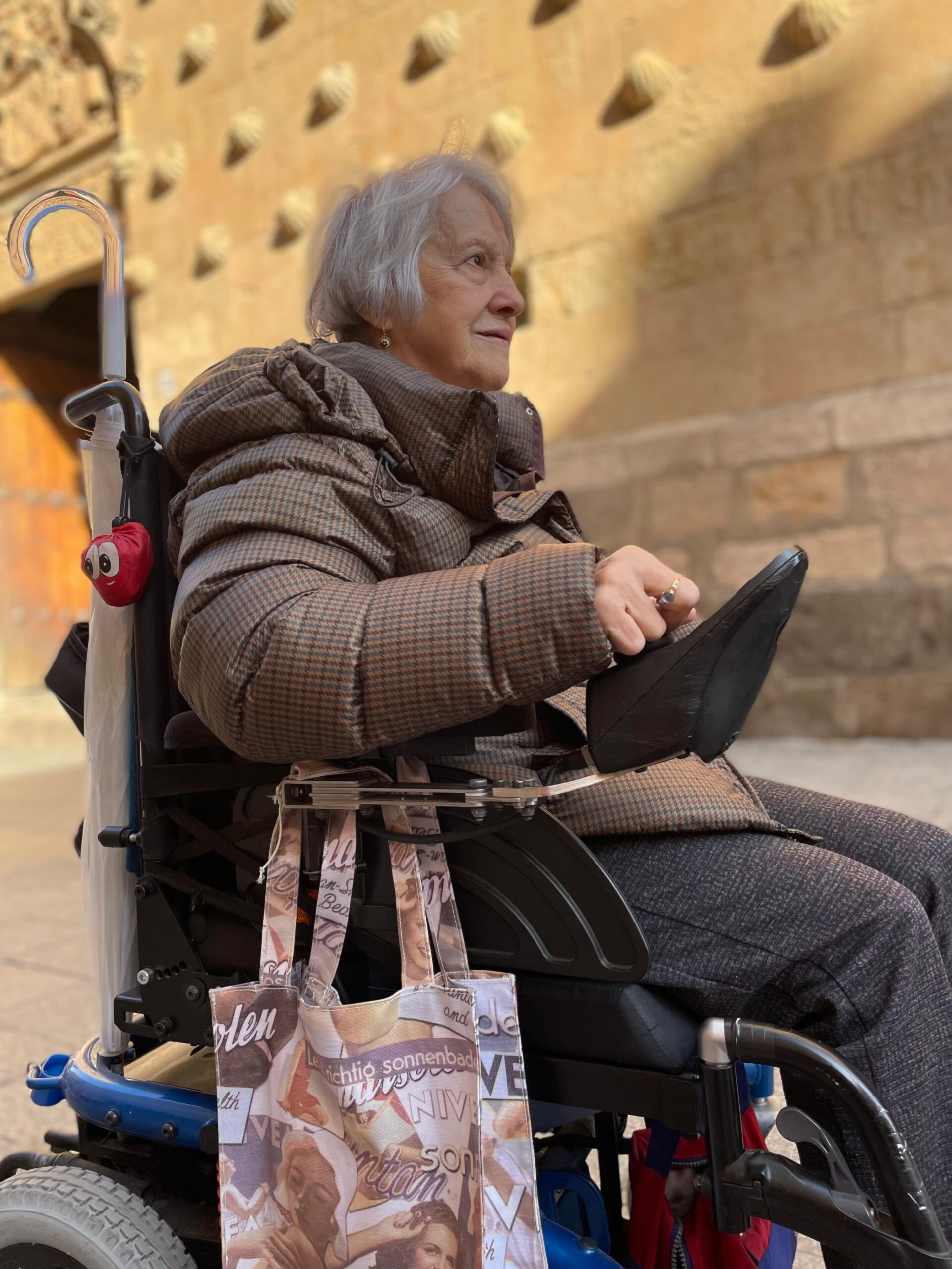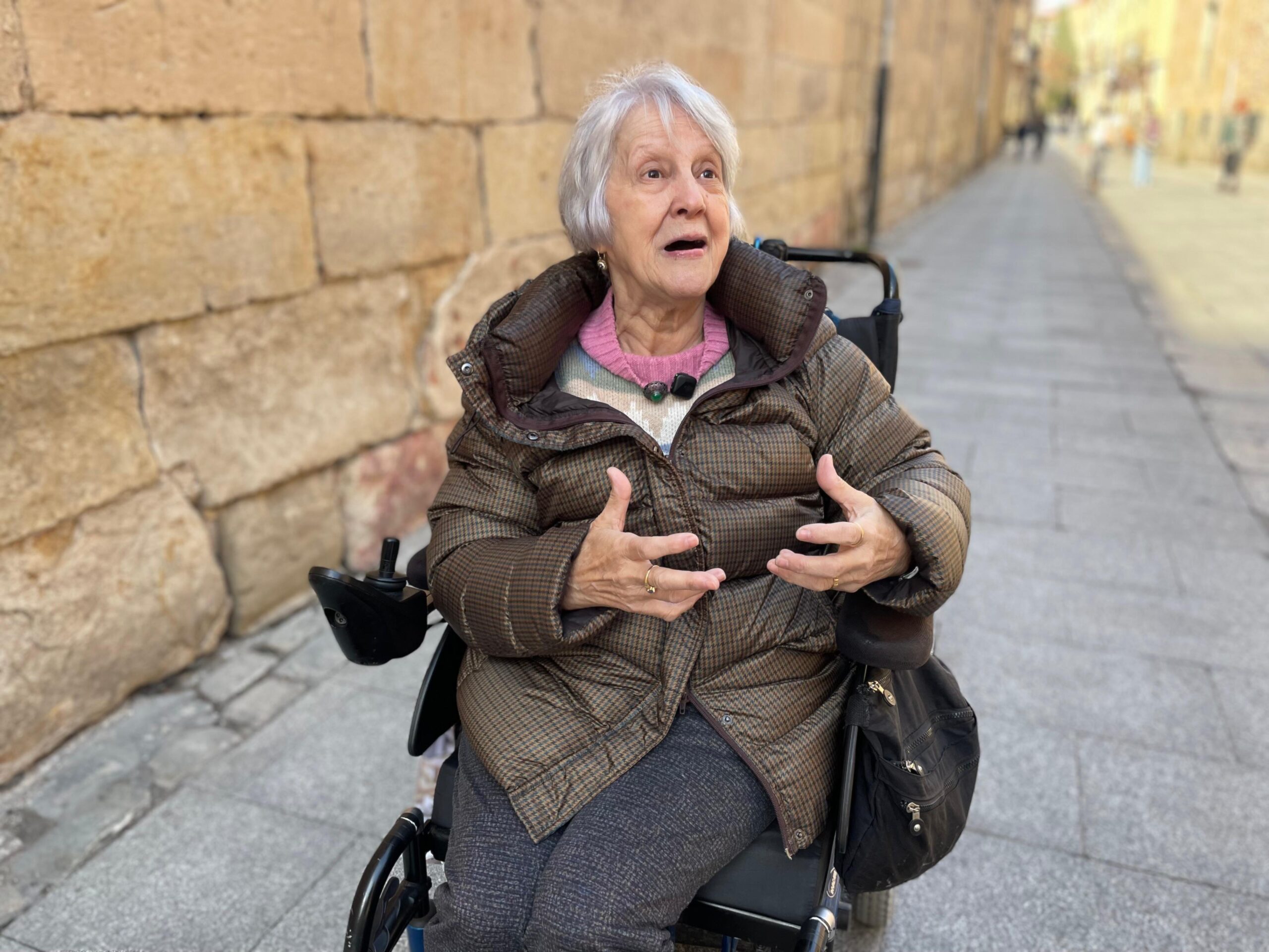 Días previos al Jubileo de las Personas con Discapacidad, que se celebrará este domingo, 14 de diciembre, en la Catedral Vieja de Salamanca, la presidenta de Frater, Julia Prada, recorre el centro de la ciudad en su silla de ruedas. Avanza despacio, sorteando aceras estrechas y empinadas, bordillos mal salvados y obstáculos que aparecen con frecuencia en el camino. A su paso, la gente facilita que avance, con gestos sencillos que facilitan el trayecto y dibujan una ciudad más humana, aunque todavía con barreras físicas para quienes se desplazan con movilidad reducida.