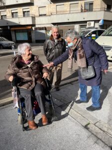 La hermana Ángeles baja las escaleras con paso ligero. Tiene 24 años y viene de México. Antes de abrir la puerta, reza delante de la Virgen junto a Sor Visitación. Empieza su ruta hacia el domicilio de Maribel, una mujer con síndrome de Down a la que acompaña cada mañana. Dirige sus pasos hasta el destino en medio del bullicio del centro, y comparte la tarea que allí realiza: “A Maribel la levantamos, la cambiamos, le damos medicación, la acompañamos al desayuno… Y así su madre puede descansar”. A ella lo que más me mueve es que se sienta querida, acogida.” Ángeles habla de su vocación desde el corazón: “Cuando nos sonríen… eso llena, y ahí sé que Dios está haciendo algo”.