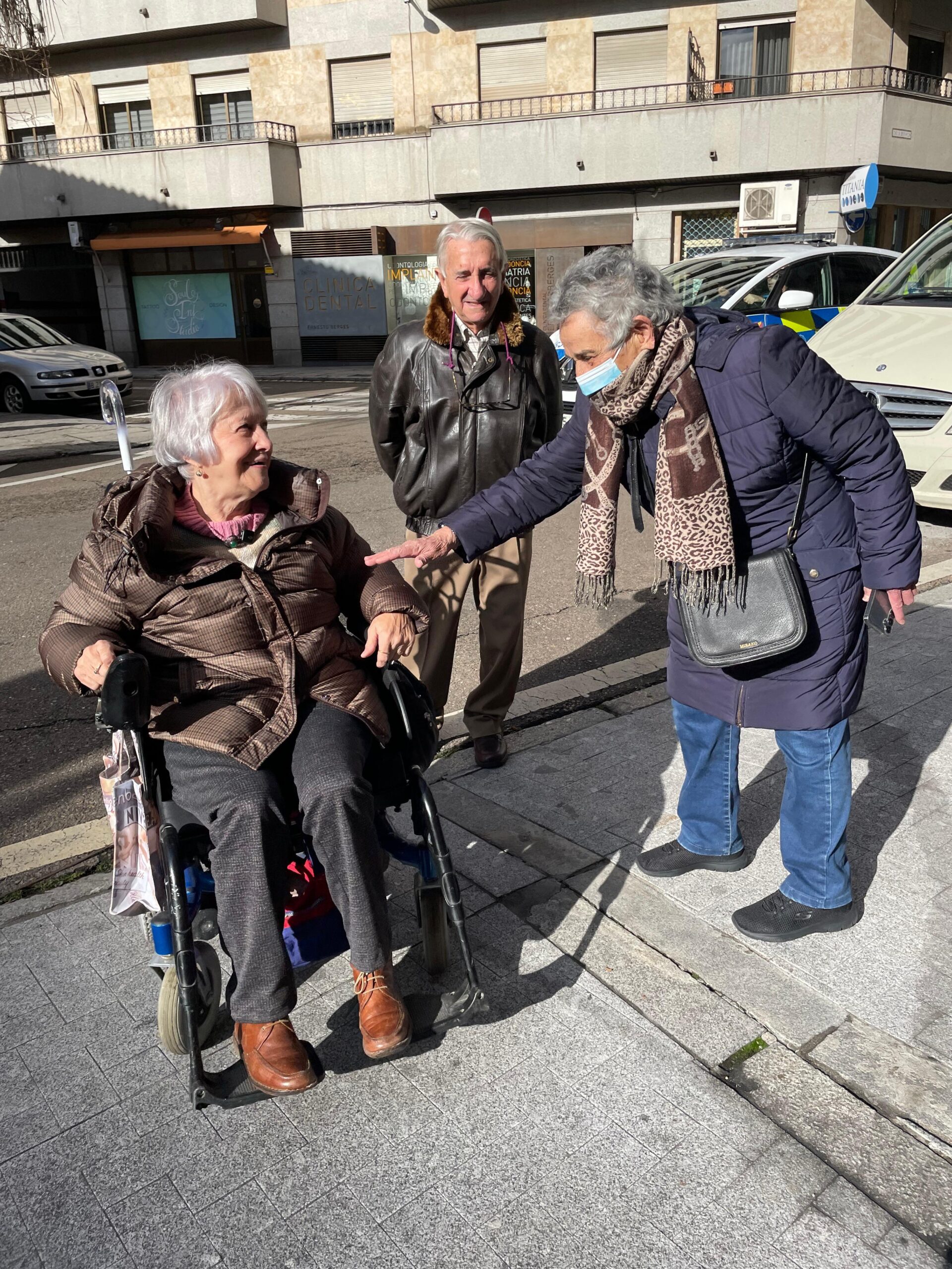 Hoy, ya jubilada, su día a día está marcado por el cuidado de su marido, Moisés, cuya discapacidad ha avanzado con los años. Julia lo acompaña, lo ayuda y sostiene la rutina cotidiana con serenidad. Cuentan con apoyo en casa, aunque limitado y no siempre suficiente para cubrir todas las necesidades. Lo explica sin queja, con realismo y una actitud constante de agradecimiento.