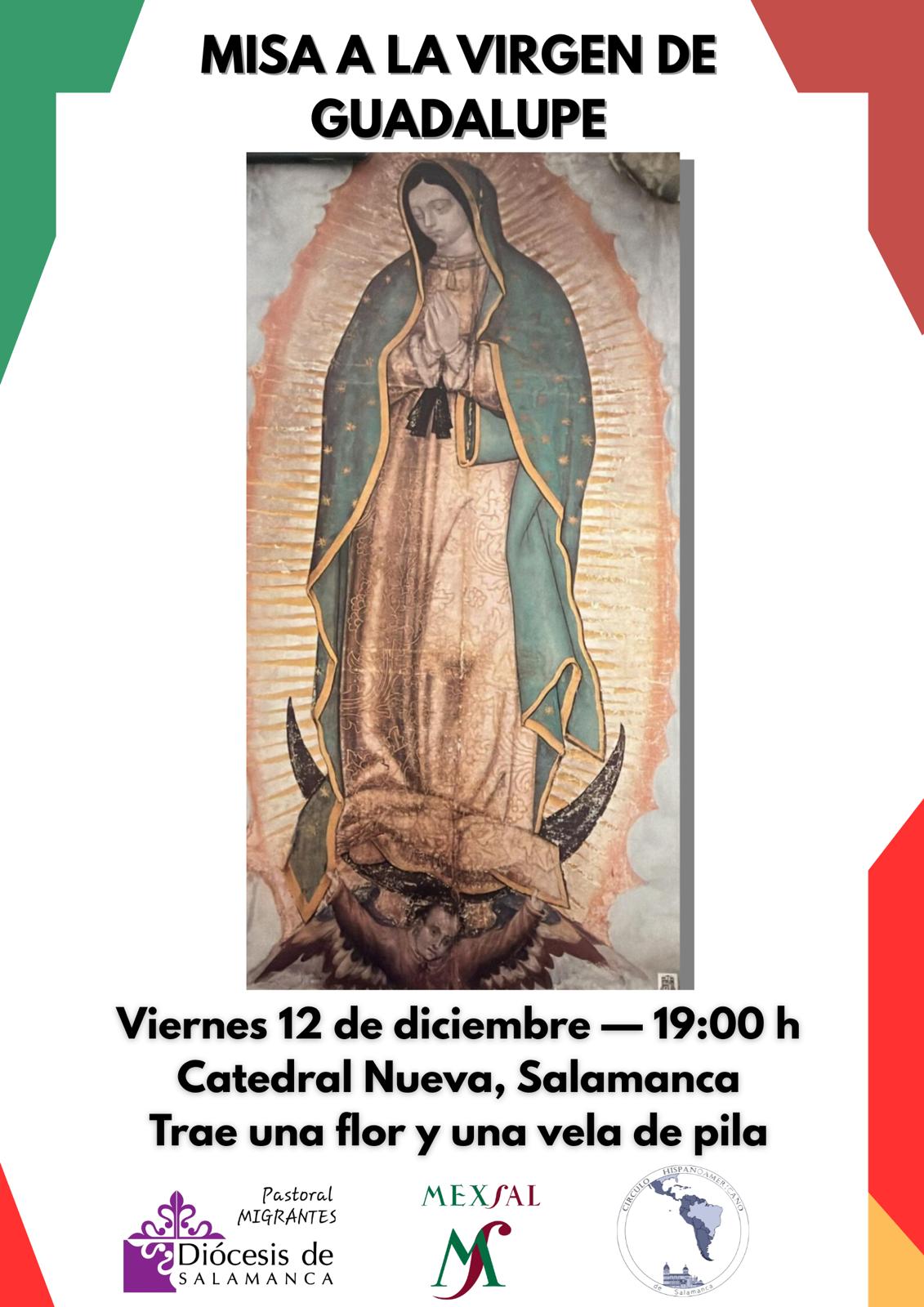 La Pastoral de Migrantes de la Diócesis de Salamanca organiza el próximo viernes, 12 de diciembre, su primera actividad diocesana, en concreto, un misa en honor a la Virgen de Guadalupe, patrona de México y símbolo espiritual para millones de personas en Latinoamérica. La celebración tendrá lugar a las 19:00 horas en la Catedral Nueva, y se invita a los asistentes a llevar una flor y una vela de pila.
