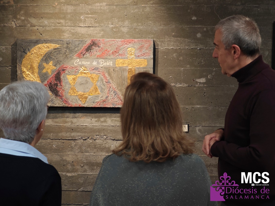Y señaló que la Diócesis de Salamanca desea que esta exposición sea también un camino espiritual: “Queremos cuidar la esperanza haciendo un viaje interior al contemplar estas obras, y que podamos llegar simbólicamente a Belén, lugar de referencia para las religiones abrahámicas” y transformar las realidades que generan división e injusticia. “Empujaremos con lo que tengamos a mano para transformar las estructuras injustas, los muros que separan, abrir alambradas que liberen a los presos (de Palestina, a los de Ucrania, a los de tantos lugares). Llenaremos los carros de combate de orquestas que alivien con canciones; ojalá que de los drones caigan pinceles de colores; que de los barcos desembarquen maestros en educación de la no violencia; y, que de la boca de los líderes, que tienen tanta responsabilidad en esto, caigan sobre sus adversarios bendiciones”. Y concluyó su intervención con el deseo que atraviesa esta exposición: “todavía no lo vemos, pero surgirá otro tiempo donde sea posible el perdón. Caminemos tras la luz y hagamos posible el sueño de la paz”.
