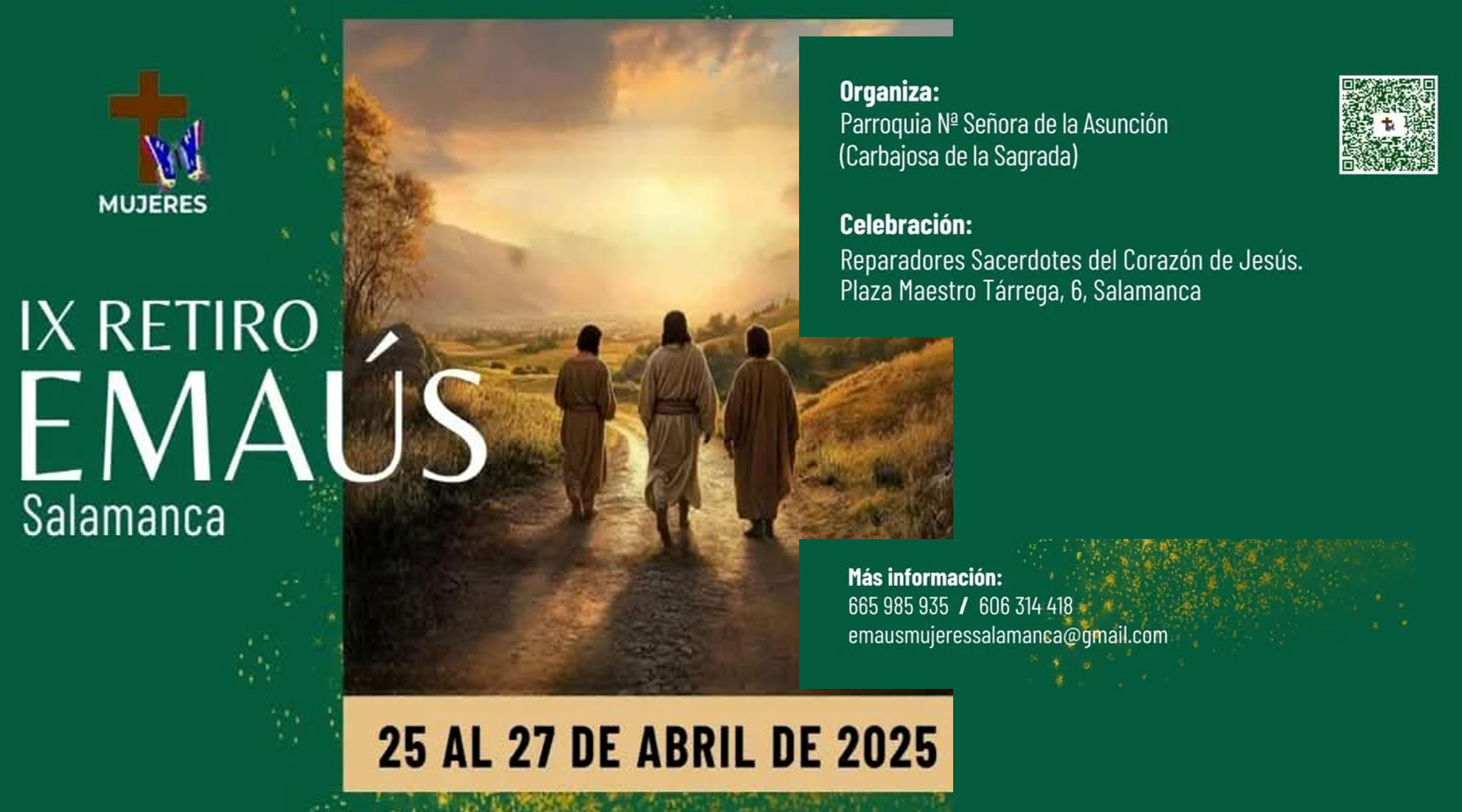 ✅ La Parroquia Nuestra Señora de la Asunción de Carbajosa de la Sagrada ha organizado el IX RETIRO EMAÚS del 25 al 27 de abril de 2025.