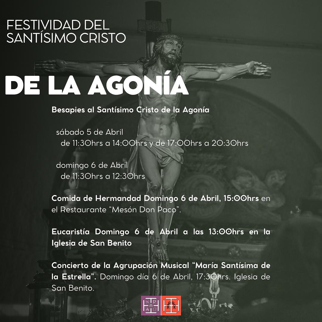 ✅ La Seráfica Hermandad de Nazarenos del Santísimo Cristo de la Agonía celebra la FESTIVIDAD DEL SANTÍSIMO CRISTO DE LA AGONÍA los días 5 y 6 de abril.