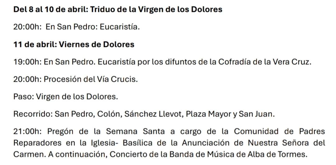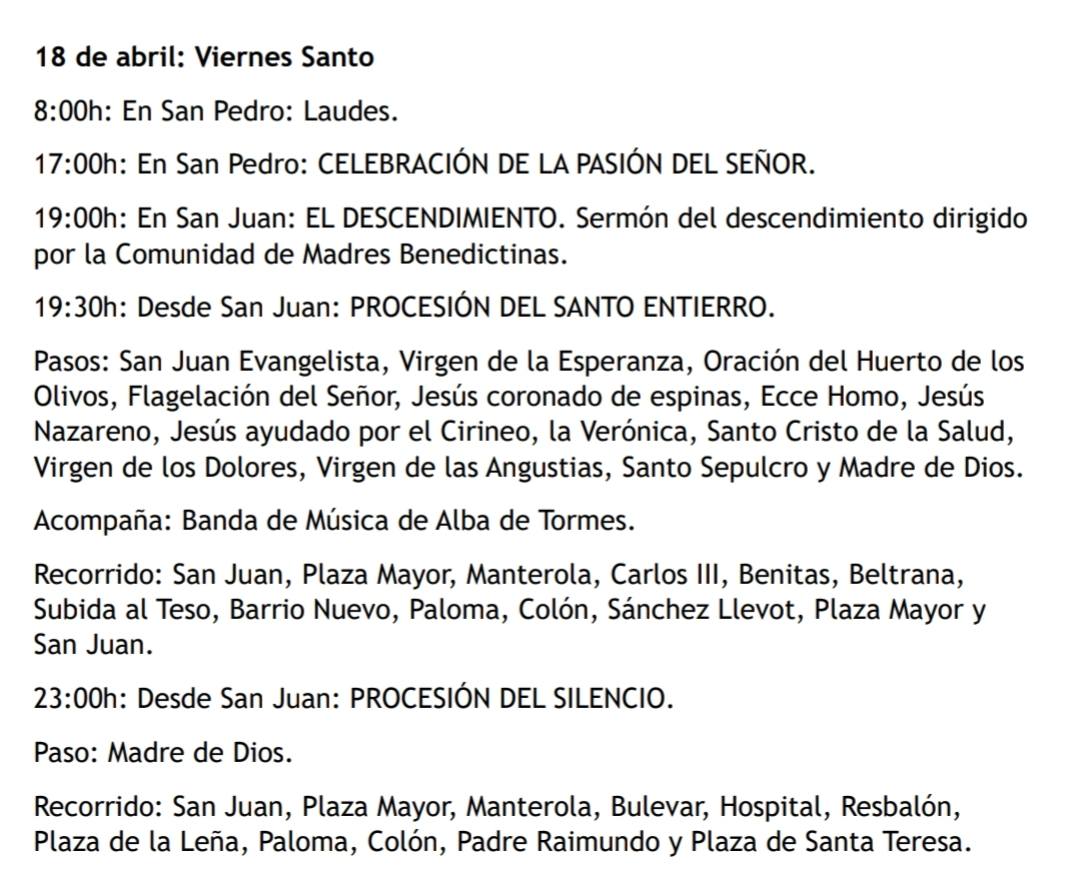 ✝️ PROGRAMACIÓN SEMANA SANTA DE ALBA DE TORMES. Agenda Cofrade