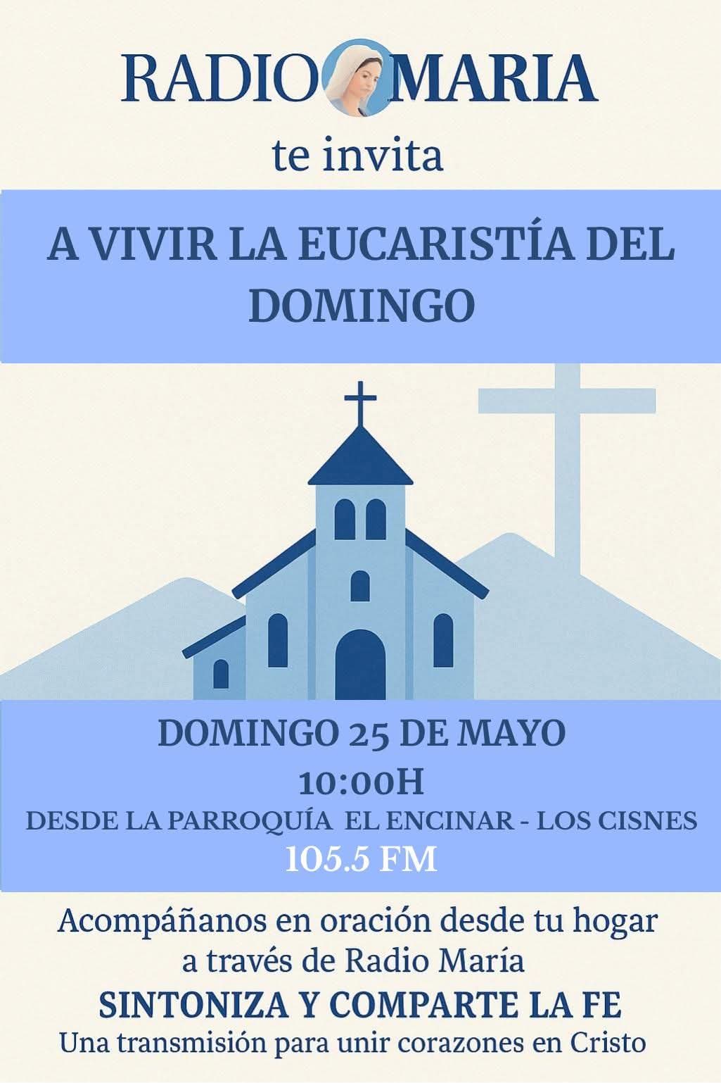 RADIO MARÍA te invita A VIVIR LA EUCARISTÍA DEL DOMINGO desde la Parroquia El Encinar – Los Cisnes el día 25 de mayo a las 10:00 horas.