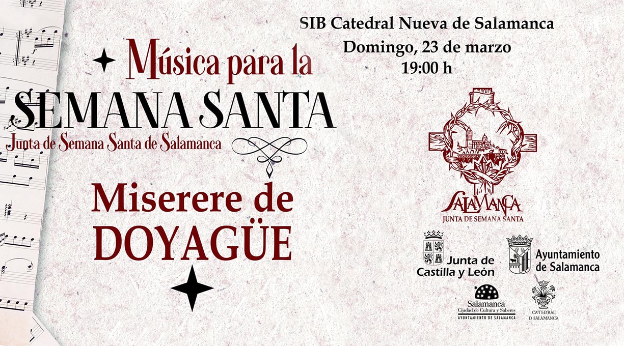 ✅ La Junta de Semana Santa de Salamanca ha organizado el tradicional MISERERE DE DOYAGÜE, con la colaboración del Excmo. Ayuntamiento de Salamanca, de la Junta de Castilla y León y de la S.I.B. Catedral de Salamanca el domingo 23 de marzo.