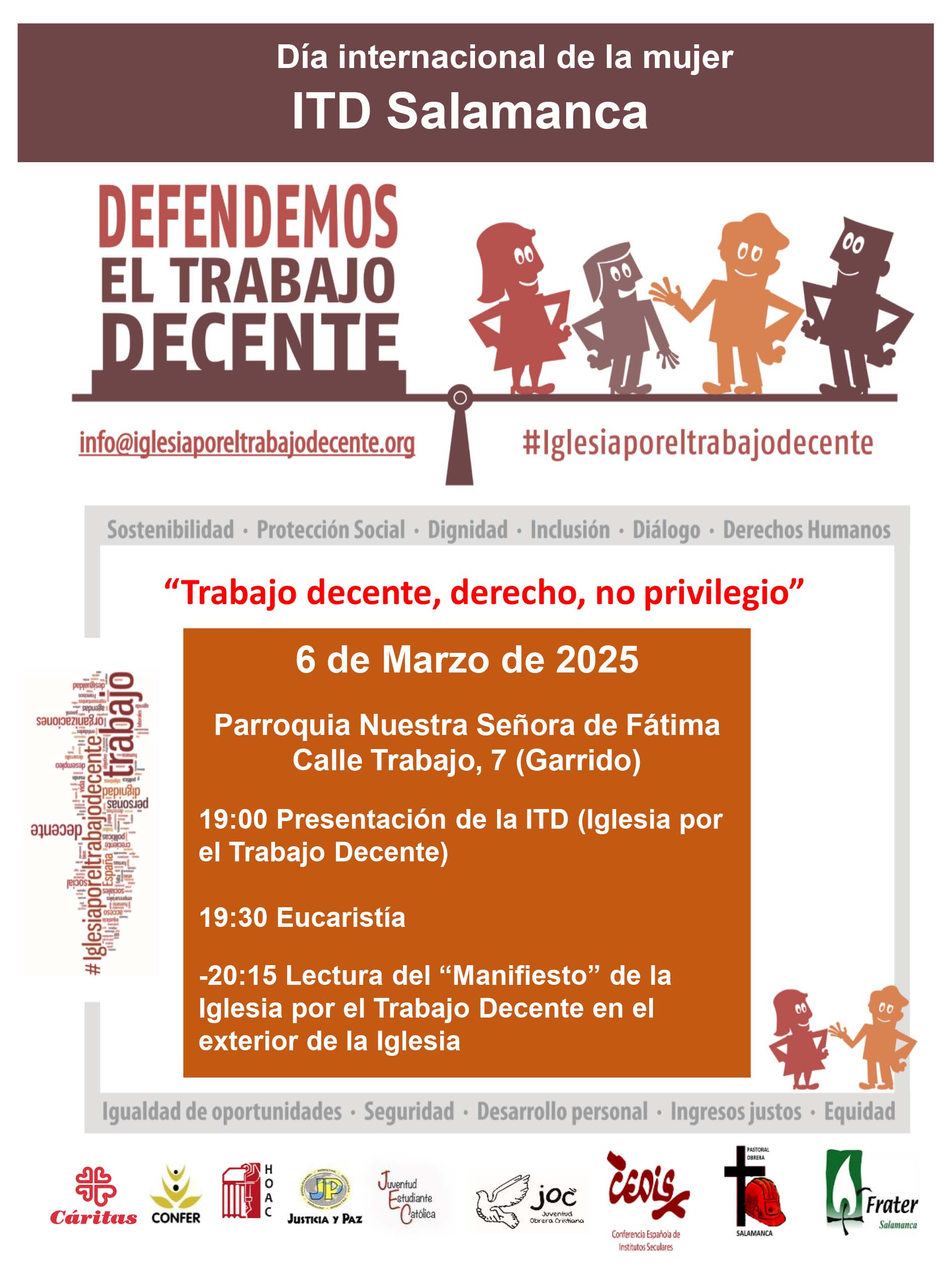 ✅ Iglesia por el Trabajo Decente denuncia que la desigualdad, la explotación y la precariedad afecta especialmente a las mujeres en el ámbito laboral, y lo hace con motivo de la celebración del Día Internacional de la Mujer, que se conmemora el 8 de marzo.