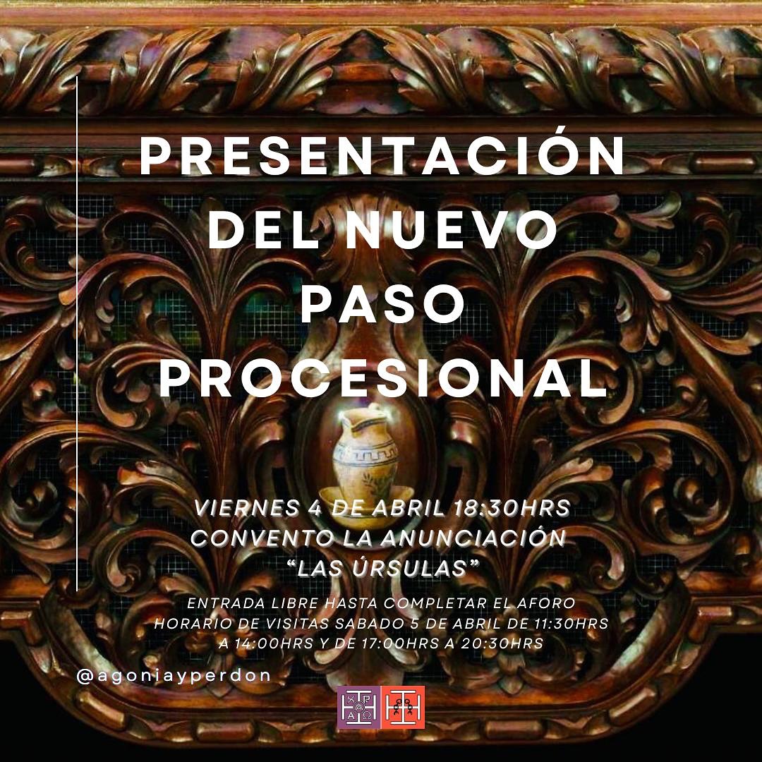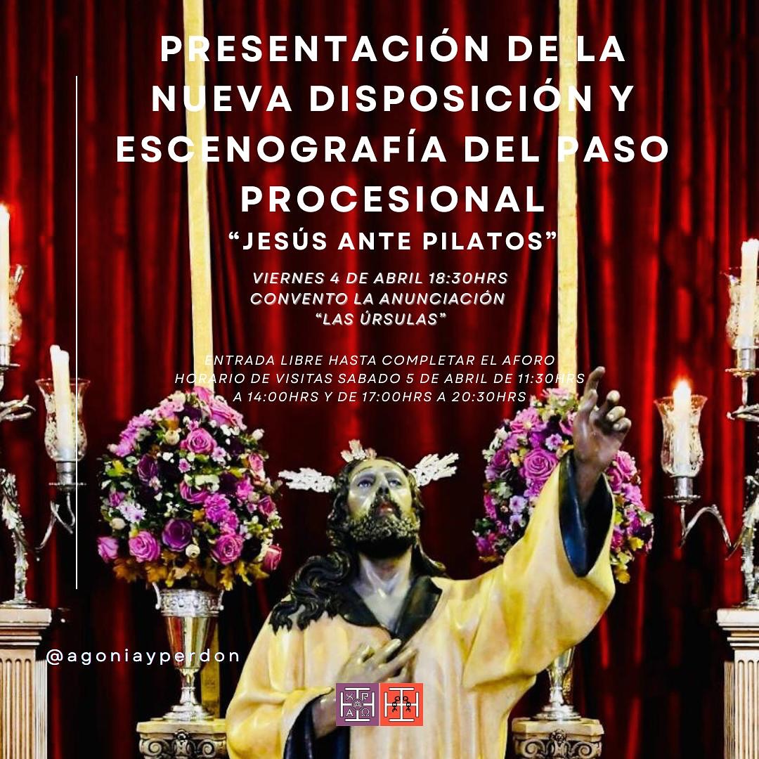 ✅ La Seráfica Hermandad de Nazarenos del Santísimo Cristo de la Agonía presentará el viernes 4 de abril a las 18:30 horas, en el Convento de las Úrsulas, el NUEVO PASO PROCESIONAL y las REMODELANCIONES llevadas a cabo en el paso procesional de JESÚS ANTE PILATOS.
