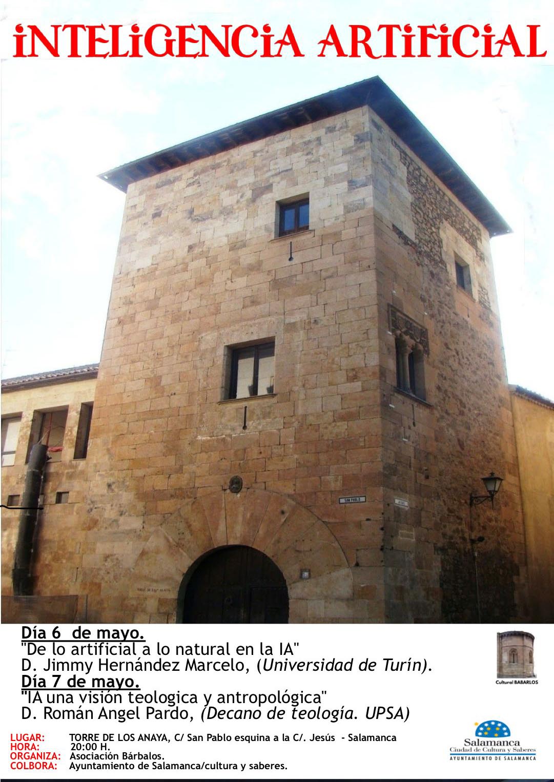 ✅ La Asociación Cultural Barbalos ha organizado dos conferencias en torno a la INTELIGENCIA ARTIFICIAL en la que colabora el Salamanca Ciudad de cultura y Saberes del Ayuntamiento de Salamanca.