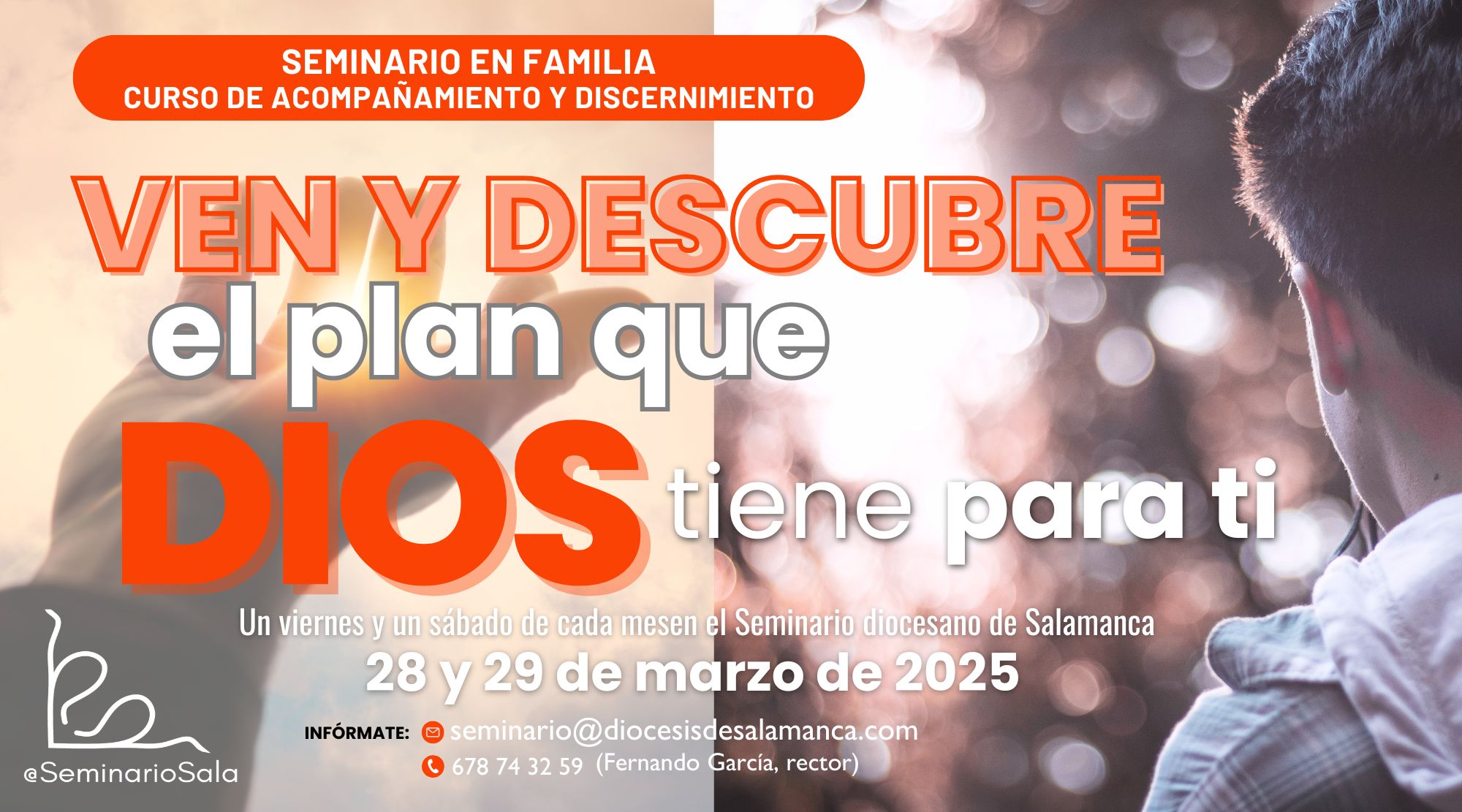 ✅ La Delegación diocesana de Pastoral Vocacional celebra los días 28 y 29 de marzo el cuarto encuentro del Seminario en Familia y del Curso de Discernimiento Vocacional, que lleva por lema: “Ven y descubre el plan que Dios tiene para ti”, dirigidos a aquellos jóvenes con inquietud vocacional. Estas iniciativas se llevarán a cabo en las dependencias del Seminario diocesano, en la Casa de la Iglesia, ubicada en la calle Rosario, 18, y que tienen como fin ayudar a los jóvenes a fortalecer su fe y a discernir su vocación al sacerdocio.
