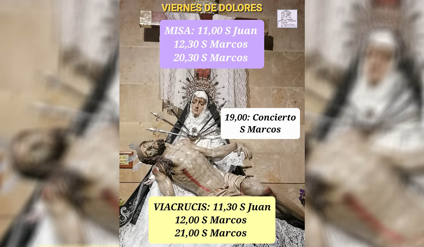 ✅ La Unidad Pastoral de San Juan de Sahagún, San Marcos y San Vicente tiene la siguiente agenda para el VIERNES DE DOLORES. ➡️ Iglesia de San Juan de Sahagún y San Marcos.