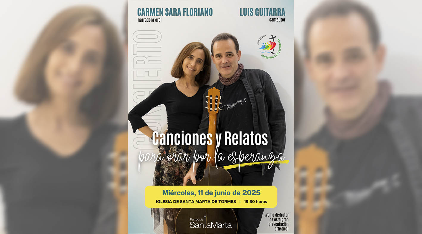 🎶 El cantautor LUIS GUITARRA y la narradora CARMEN SARA FLORIANO ofrecerán hoy, miércoles 11 de junio, un recital de música y relatos llenos de esperanza, a las 19:30 horas, en la parroquia de Santa Marta de Tormes. Una cita para orar, reflexionar y dejarse tocar por un arte que inspira y transforma. 📍 Parroquia Santa …