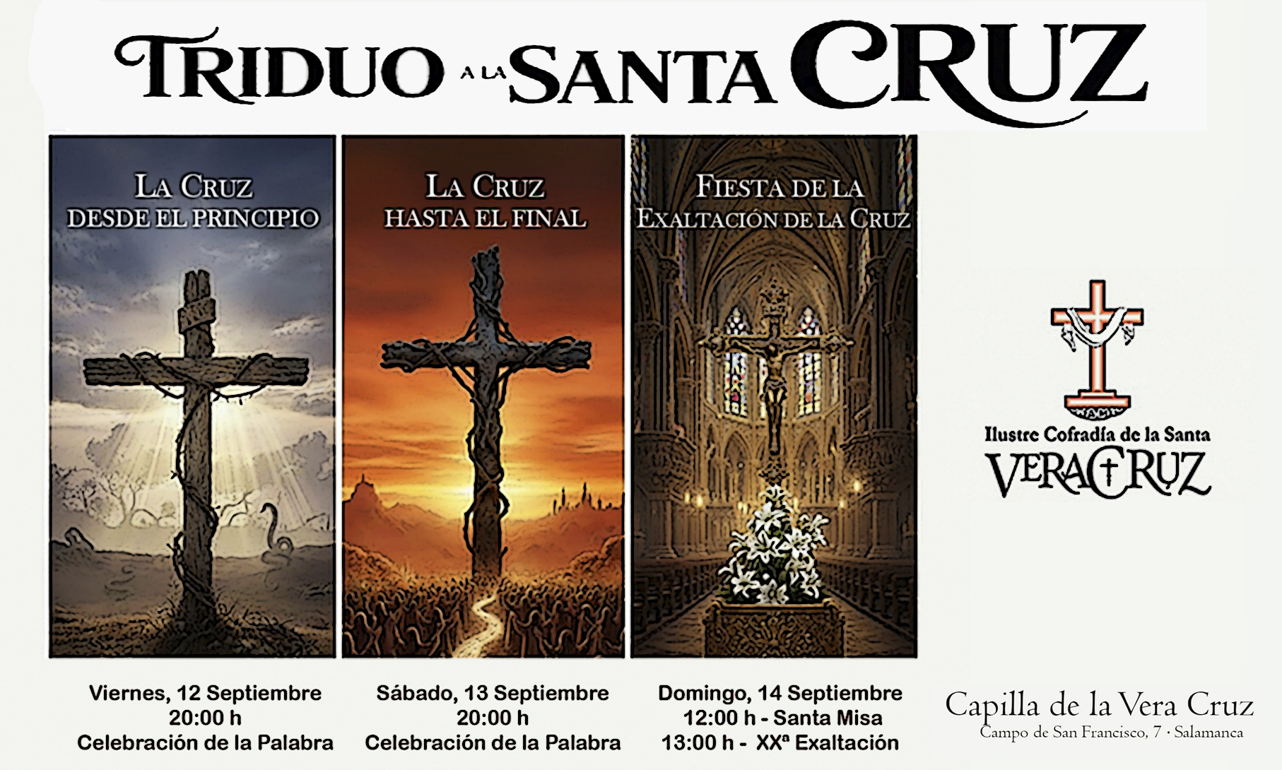 ✅ La Cofradía de la Santa Vera Cruz celebra su fiesta litúrgica, la Santa Cruz, el domingo 14 de septiembre, por lo que han organizado un TRIDUO en su honor como es costumbre en su Capilla. En esta ocasión se estructura de la siguiente manera: El viernes 12, a las 20:00 h, celebración de la Palabra titulada “La …