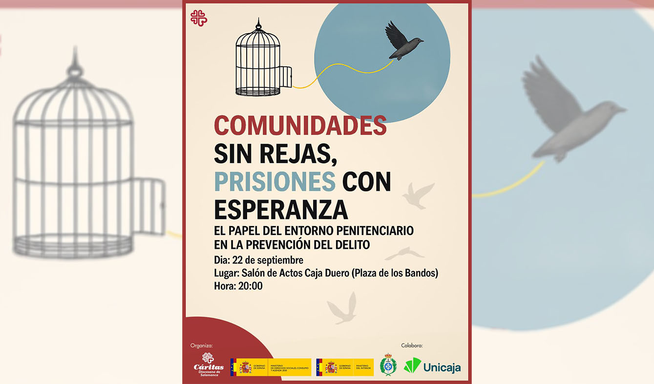 ✅ El próximo lunes 22 de septiembre a las 20:00 horas, no te pierdas la conferencia: “COMUNIDADES SIN REJAS, PRISIONES CON ESPERANZA” de Cáritas Diocesana de Salamanca en el que explorarán el papel del entorno penitenciario en la prevención del delito. Salón de Actos Caja Duero, Plaza de los Bandos