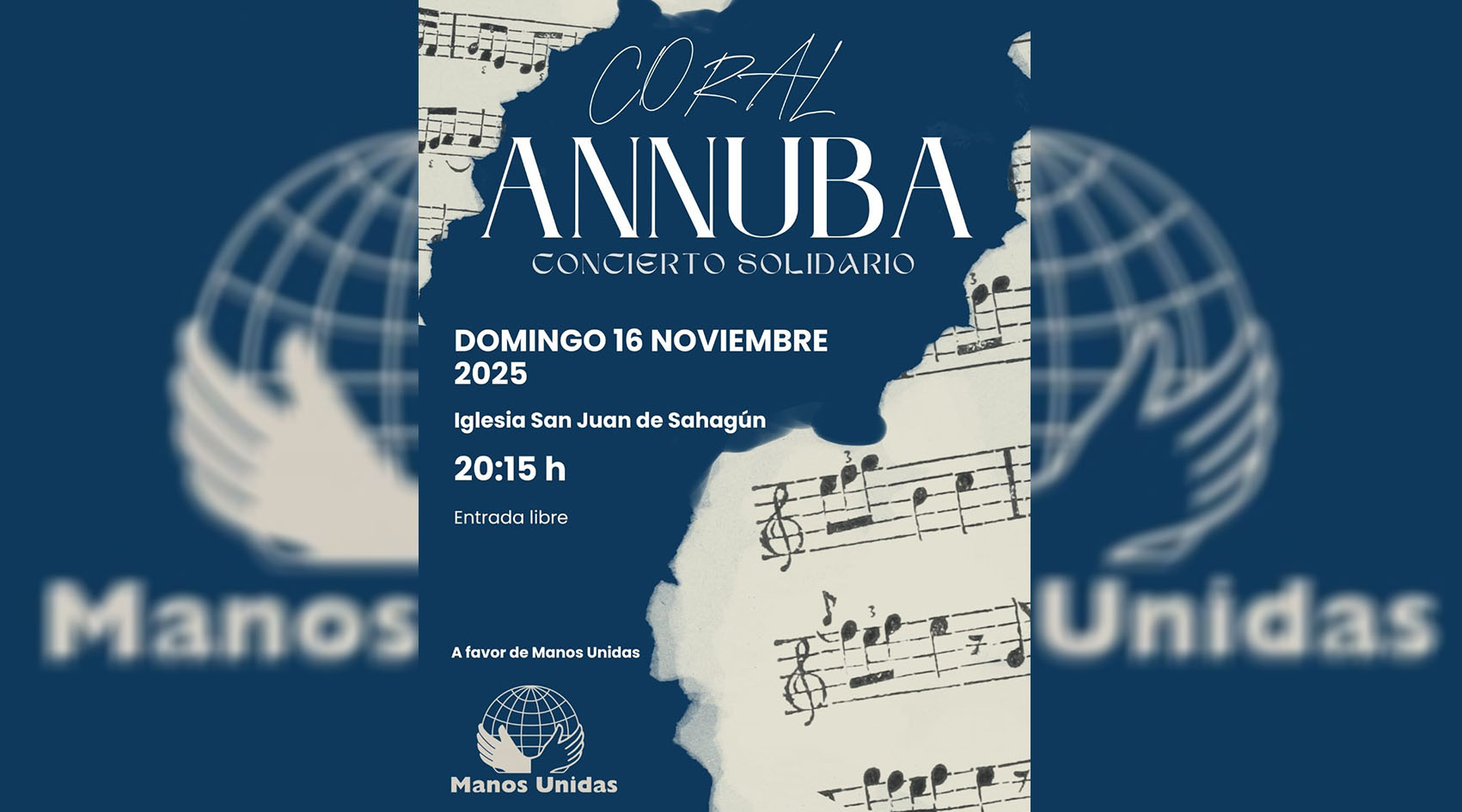 ✅ CONCIERTO SOLIDARIO "CORAL ANNUBA" organizado por Manos Unidas para el domingo 16 de noviembre a las 20:15 horas. Entrada libre. Iglesia de San Juan de Sahagún.