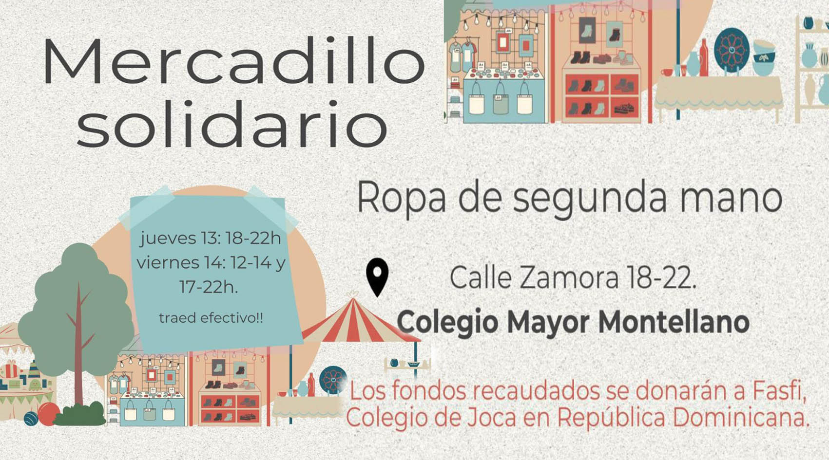 ✅ MERCADILLO SOLIDARIO ROPA DE SEGUNDA MANO en el Colegio Mayor Montellano. Los fondos recaudados se donarán a Fasfi, Colegio de Joca en República Dominicana. JUEVES 13 de noviembre: De 18 a 22 horas VIERNES 14 de noviembre: De 12 a 14 horas y de 17 a 22 horas Colegio Mayor Montellano, calle Zamora 18