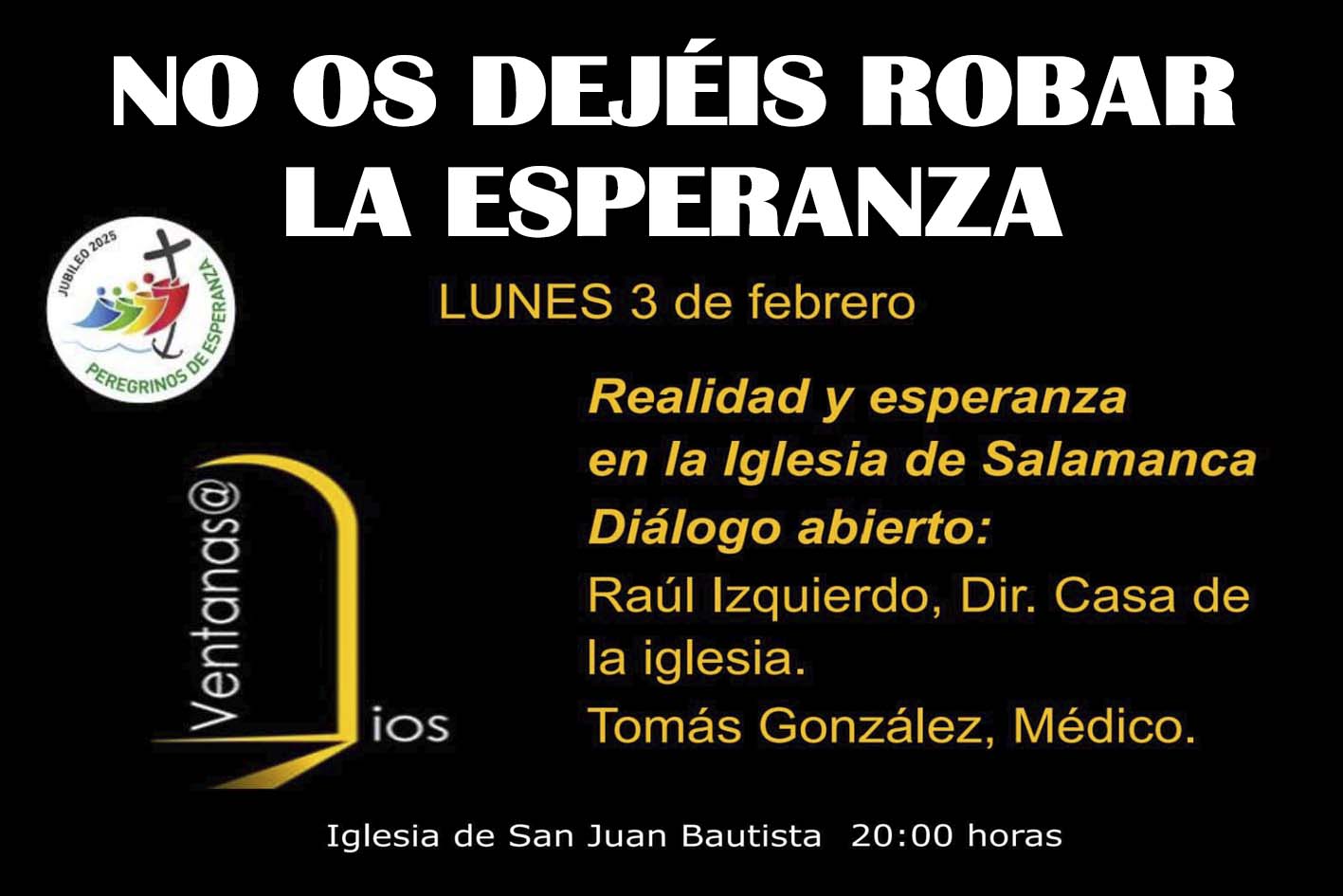NO OS DEJÉIS ROBAR LA ESPERANZA. Ciclo “No olvidéis la esperanza”, del espacio de evangelización #Ventanas@Dios con un diálogo sobre la realidad de la esperanza en la Iglesia de Salamanca desde la mirada de los laicos Raúl Izquierdo y Tomás González.