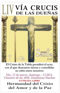 ✅ La Hermandad de Cristo del Amor y de la Paz celebrará VÍA CRUCIS en el CLAUSTRO DEL CONVENTO DE LAS DUEÑAS presidido por el Cristo de la Tabla el domingo día 22 de marzo a las 12:00horas..