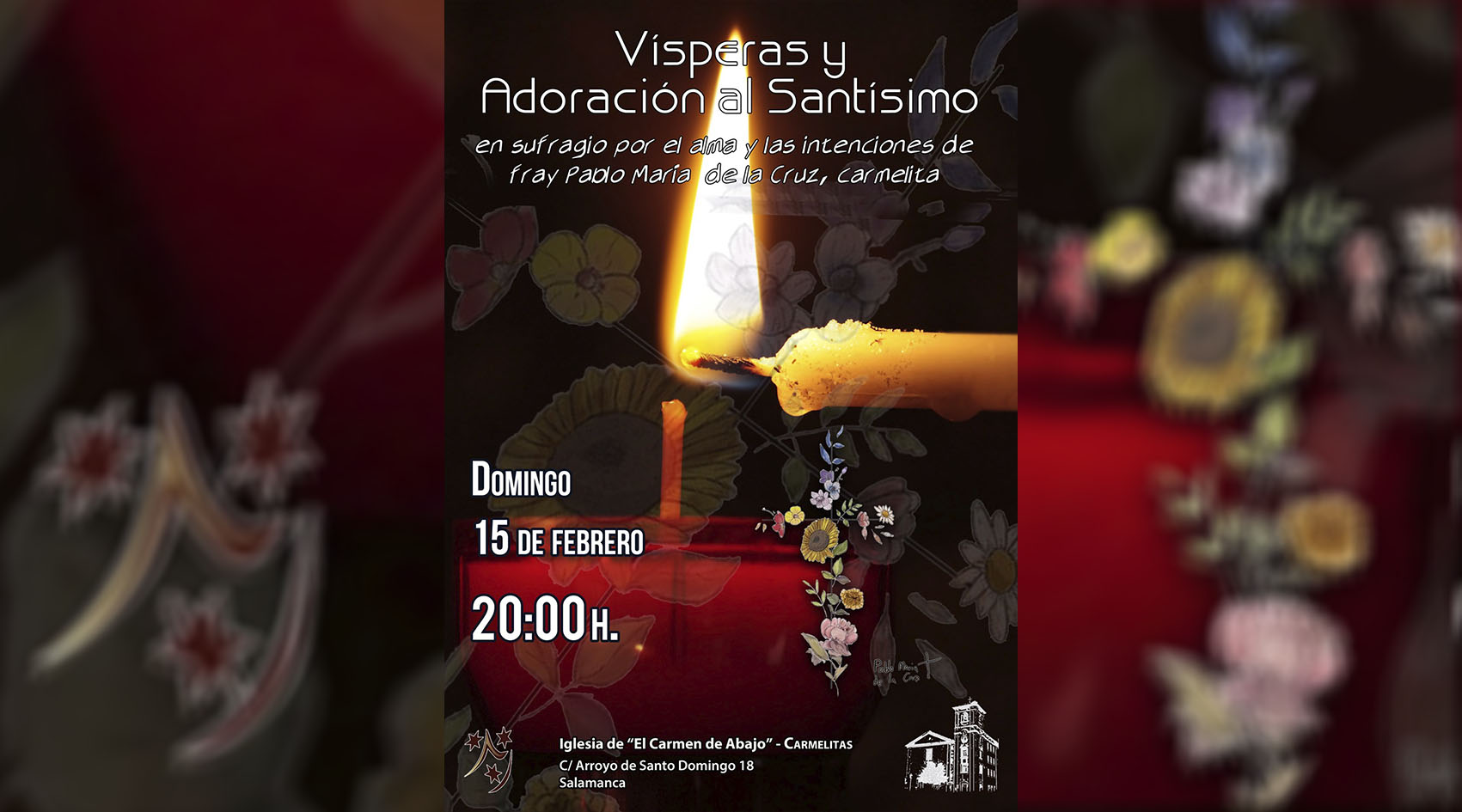 ✅ Los Carmelitas Calzados en la iglesia de “El Carmen de Abajo” celebrarán el domingo día 15 de febrero a las 20:00 h Vísperas y Adoración al Santísimo en sufragio por el alma y las intenciones de Fray Pablo María de la Cruz, Carmelita.