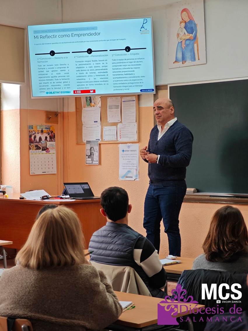 La jornada comenzó con la eucaristía en la iglesia del colegio, presidida por el obispo de Salamanca, Mons. José Luis Retana, quien invitó a situar la pregunta vocacional en el centro de la vida cristiana.