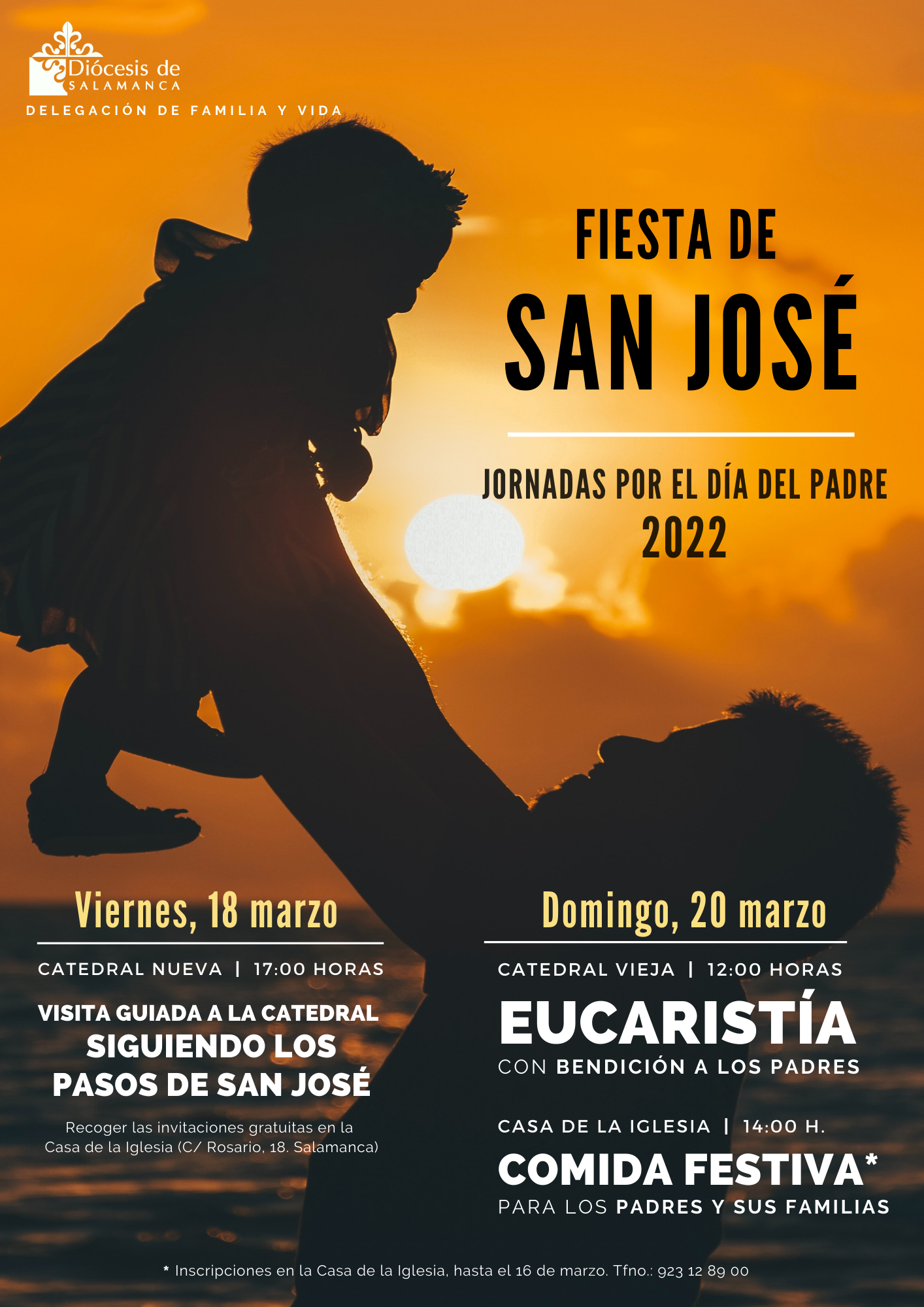 Y para el domingo, 20 de marzo, la Delegación de Familia invita a las familias a participar en la eucaristía dominical, que tendrá lugar a las doce del mediodía en la Catedral vieja, y en la que se va a impartir una bendición a los padres. La jornada concluirá con una comida festiva para los padres y familias, a las 14:00 horas en el comedor mayor de la Casa de la Iglesia. El precio del cubierto es de 12 euros, y para participar es necesario haberse inscrito previamente en la portería de la Casa de la Iglesia, en el teléfono: 923 12 89 00.