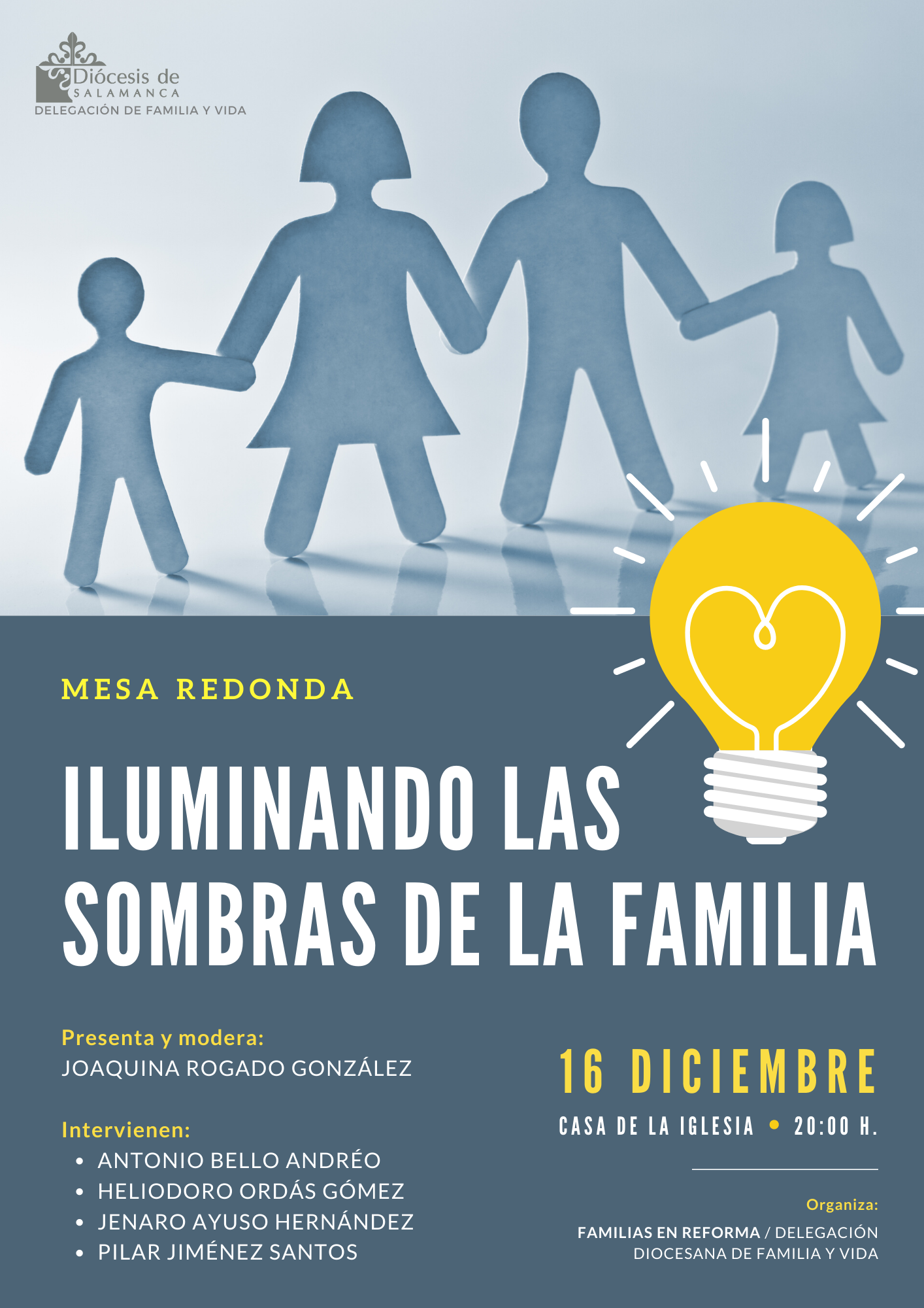 El equipo “Familias en reforma”, de la Delegación diocesana de Familia y Vida, organiza la mesa redonda: “Iluminando las sombras de la familia”, que se va a celebrar el jueves, 16 de diciembre, a las 20:00 horas en la Casa de la Iglesia.