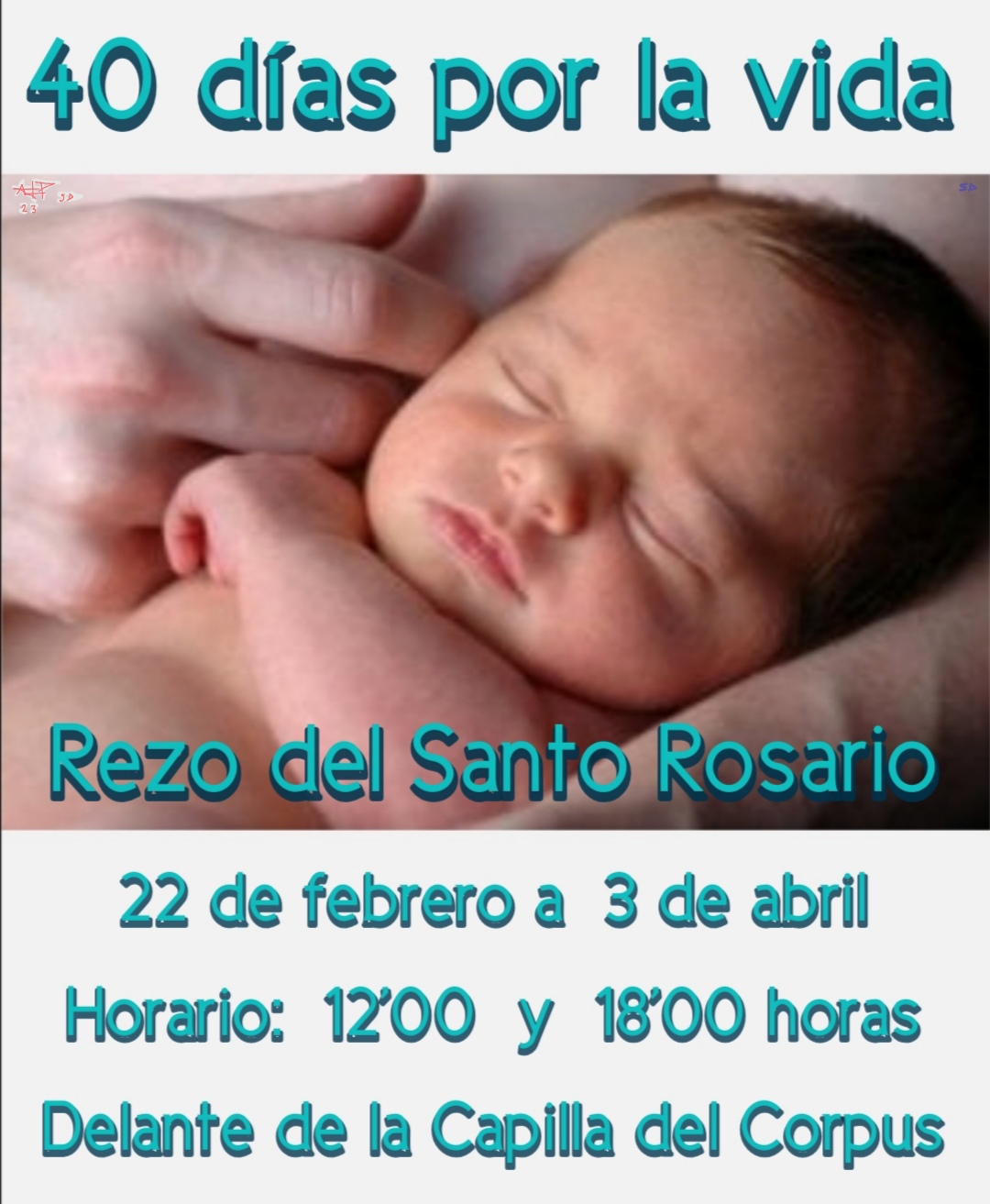 Hasta el 3 de abril se rezará el santo Rosario dos veces al día para defender al no nacido y acabar con la injusticia del aborto, a las 12:00 y 18:00 horas, junto a la capilla de la Adoración Eucarística Perpetua
