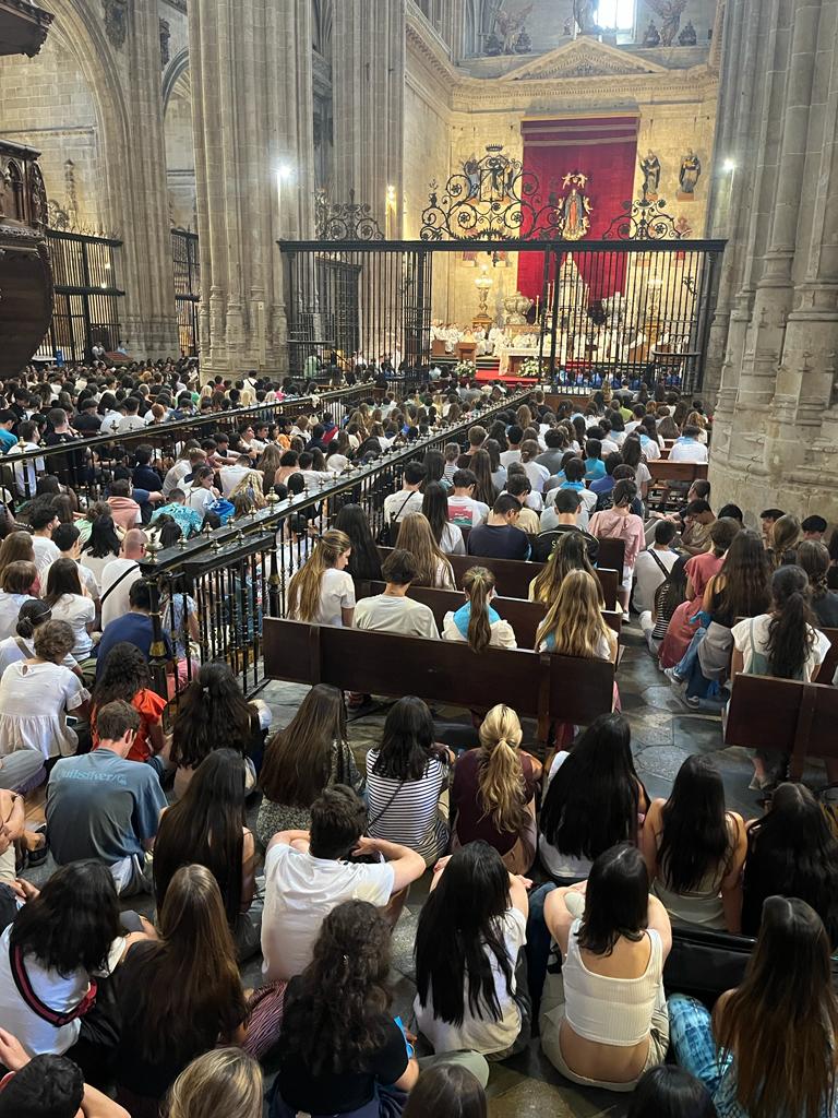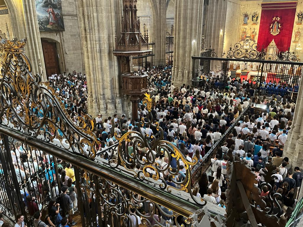 Jornada inolvidable la que se ha vivido este miércoles, 26 de julio en la Catedral, que nos ha regalado bellas imágenes del templo repleto de jóvenes que han celebrado su fe en la iglesia madre de Salamanca y la han inundado de alegría y esperanza. Estos peregrinos caminan hacia Lisboa para vivir una experiencia de comunión que los pondrá cara a cara con Cristo.