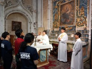 Así, las celebraciones de la mañana se iniciaron con la participación de un grupo de cuarenta peregrinos de la Diócesis de Jae Ju, de Corea, que se congregaron en la capilla de San Clemente; otros grupos de salesianos y de la Diócesis de Seúl participaron en la Misa de la fiesta de San Joaquín y Santa Ana, organizada por la Delegación diocesana de Familia y Vida, junto a los abuelos y mayores, en una bella celebración intergeneracional.
