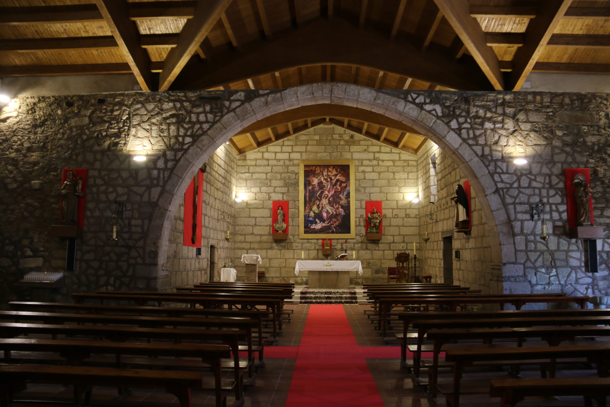 “Hemos dado un trasfondo a todas las imágenes en rojo, porque sino, las paredes de piedra se las comían”, aclara también el primer edil. Alonso matiza también que la devoción a la Virgen del Carmen se debe a una tradición del pueblo, “porque hubo un tiempo que se pasaban de casa en casa una urna con una pequeña Virgen del Carmen”.