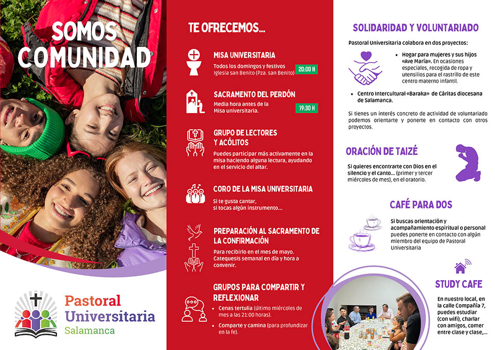 El nuevo equipo que conformamos la Pastoral Universitaria, queremos ofreceros todo lo que somos y tenemos. Pero también tenemos que deciros que os necesitamos, no sólo para llevar adelante la programación que, poco a poco, iremos difundiendo, sino para generar un nuevo dinamismo en nuestra universidad.
