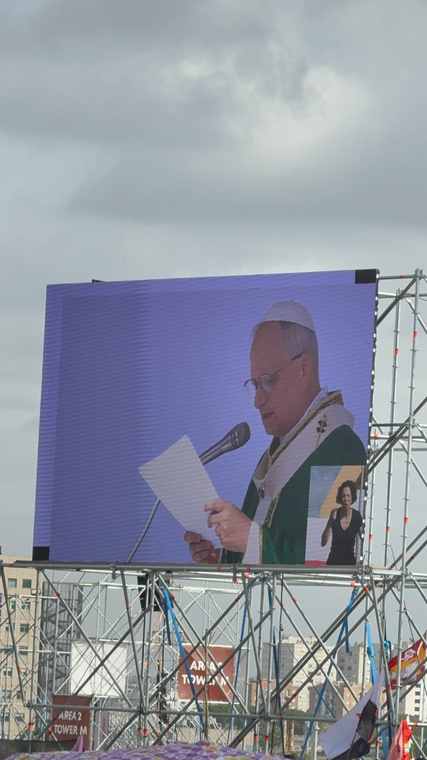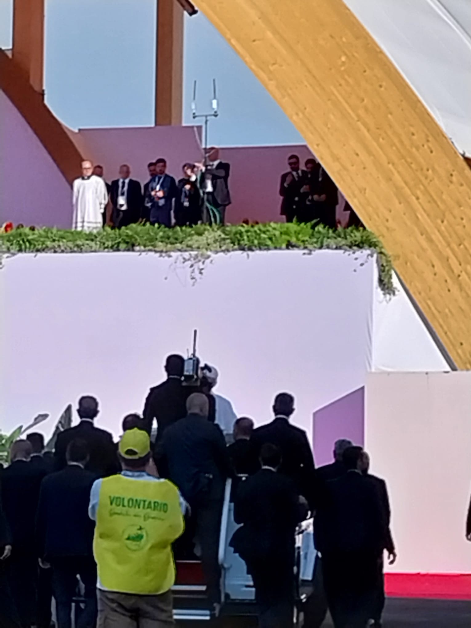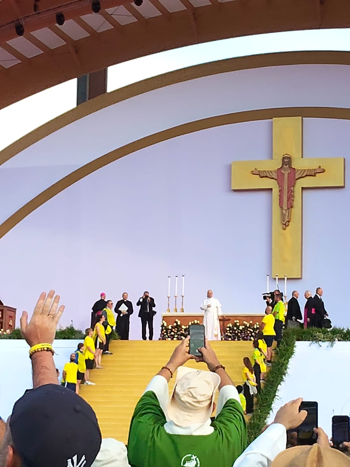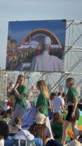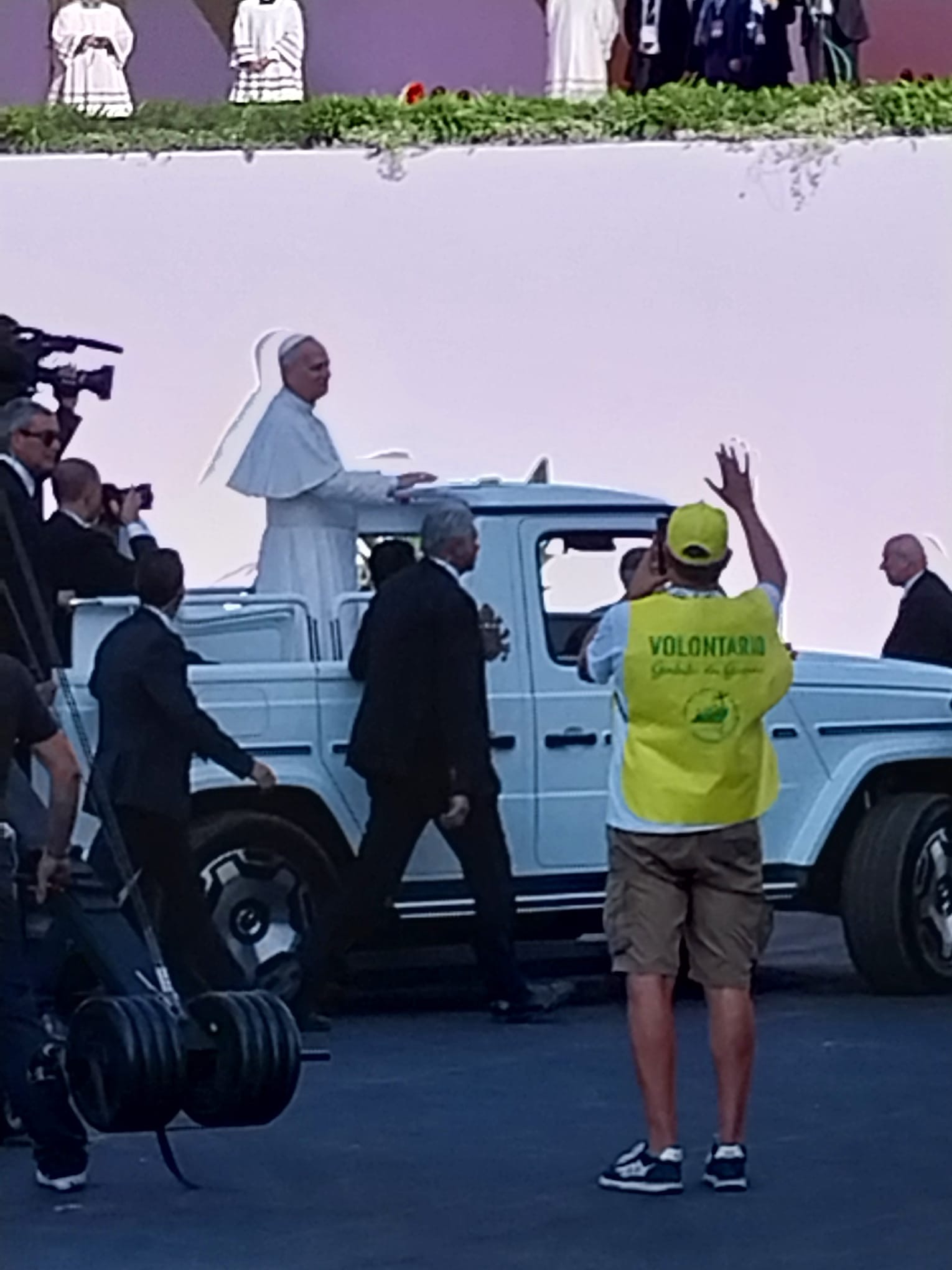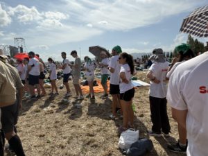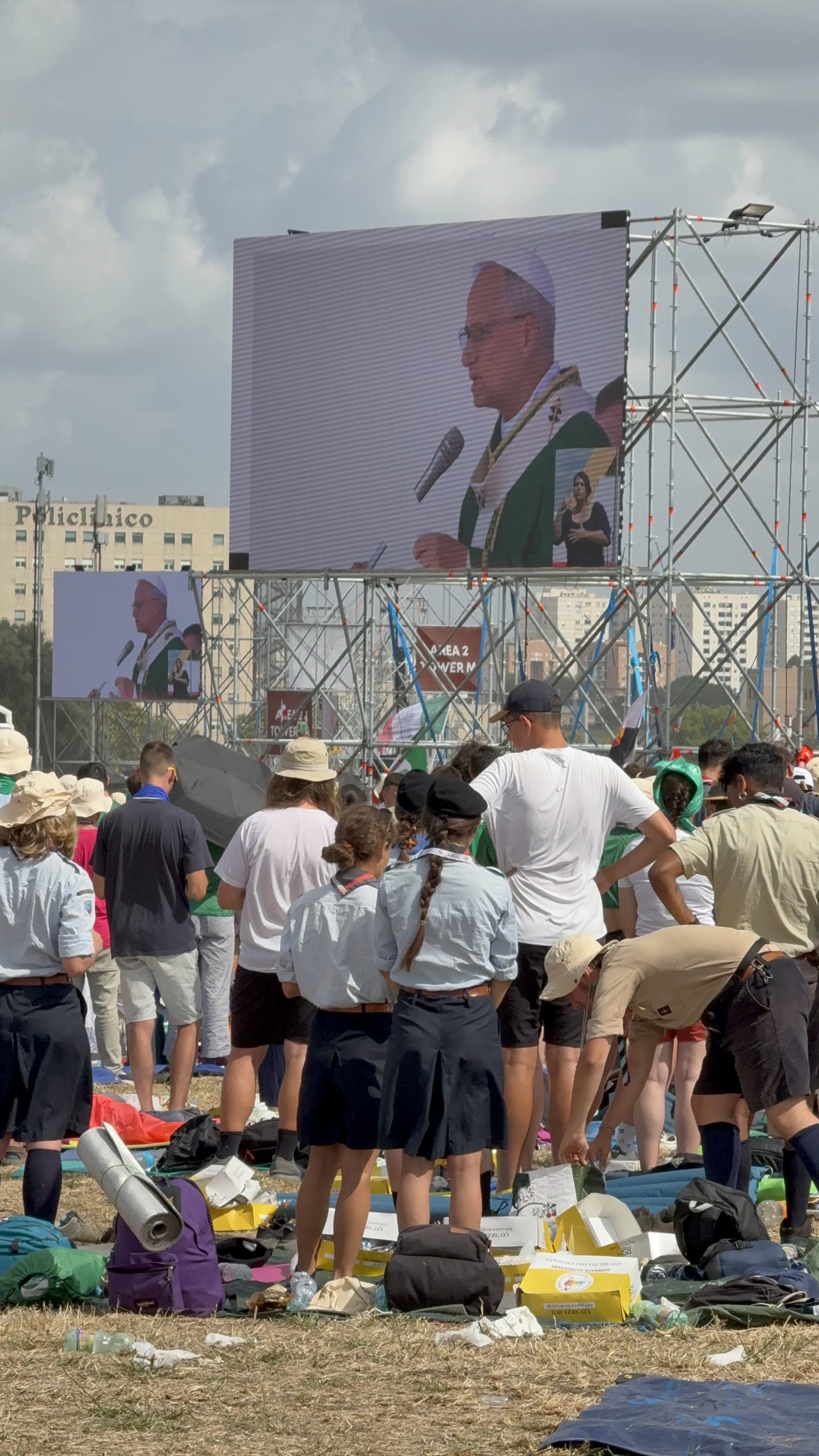 Alrededor de las seis de la mañana, la megafonía comenzó a sonar suavemente para despertar a los peregrinos con música y avisos de la organización. Sobre las ocho, el helicóptero del papa sobrevolaba la explanada, generando un silencio reverente que pronto se convirtió en ovación al verlo pasar en su papamóvil por una de las vías cercanas al sector donde descansaban los jóvenes de Salamanca. Fue un instante fugaz pero profundamente significativo.