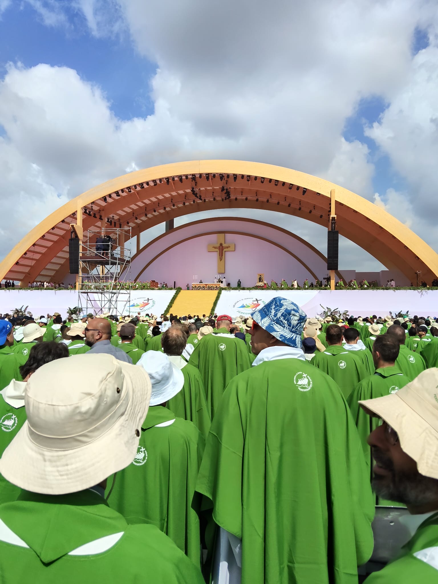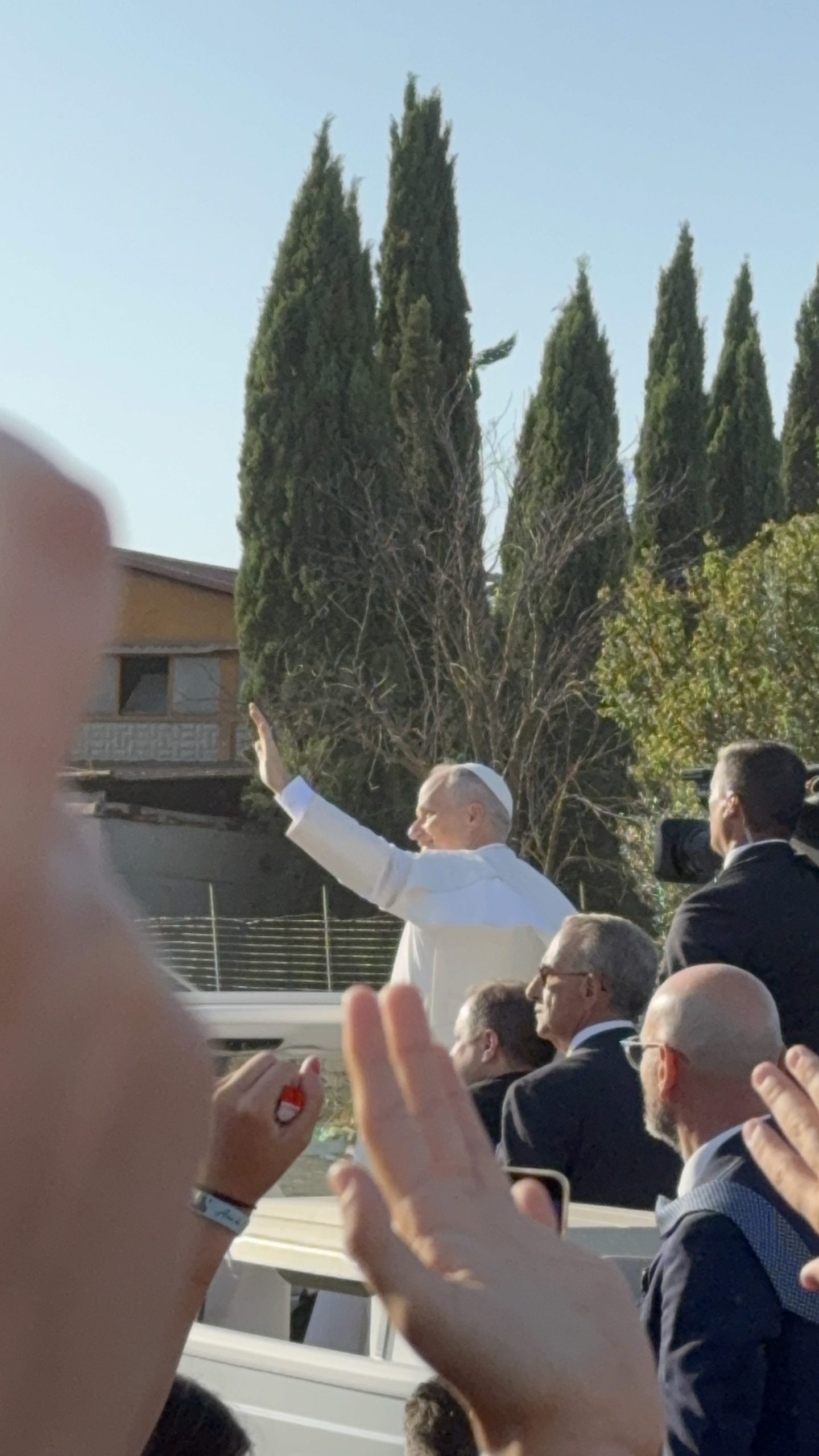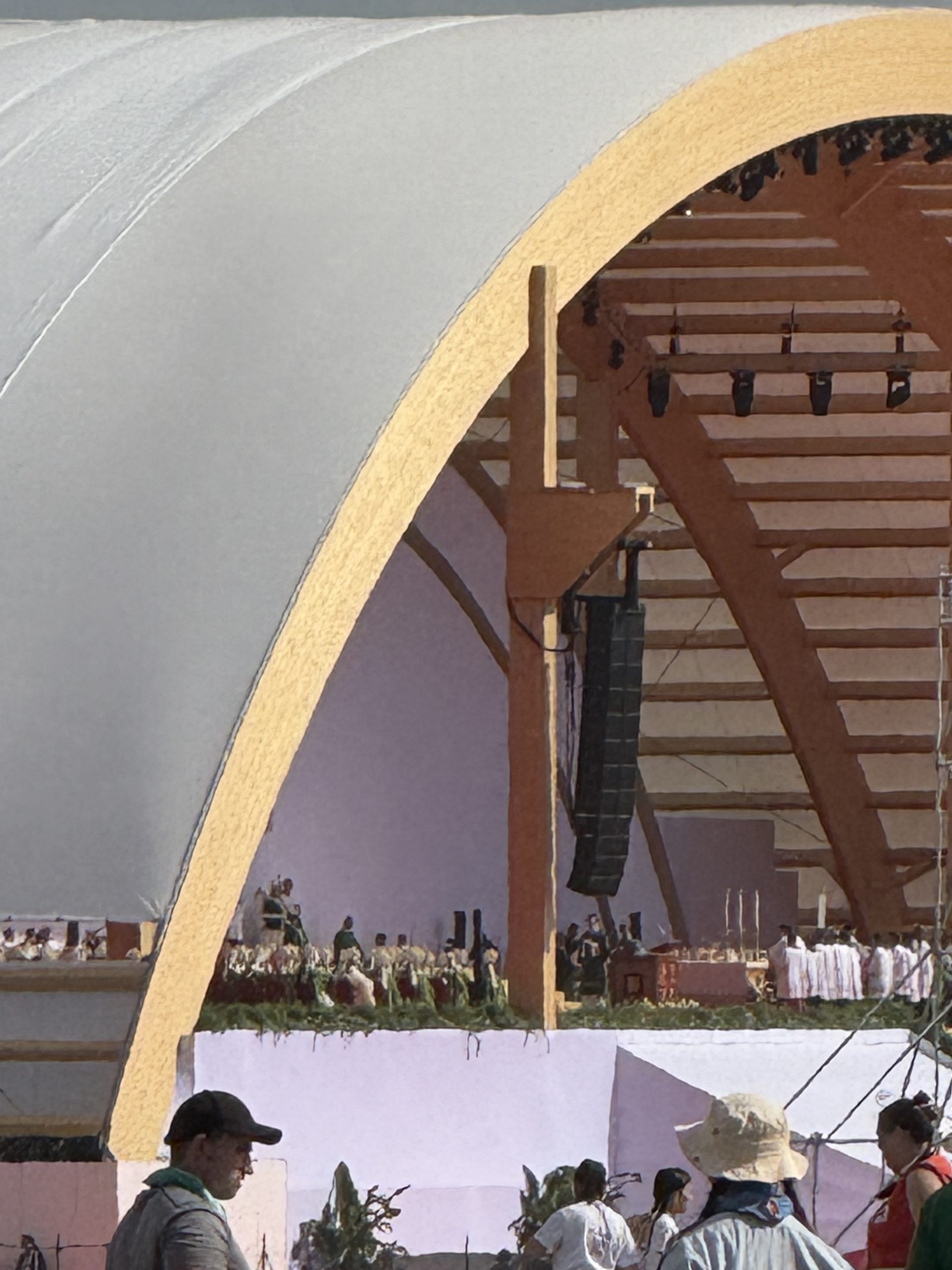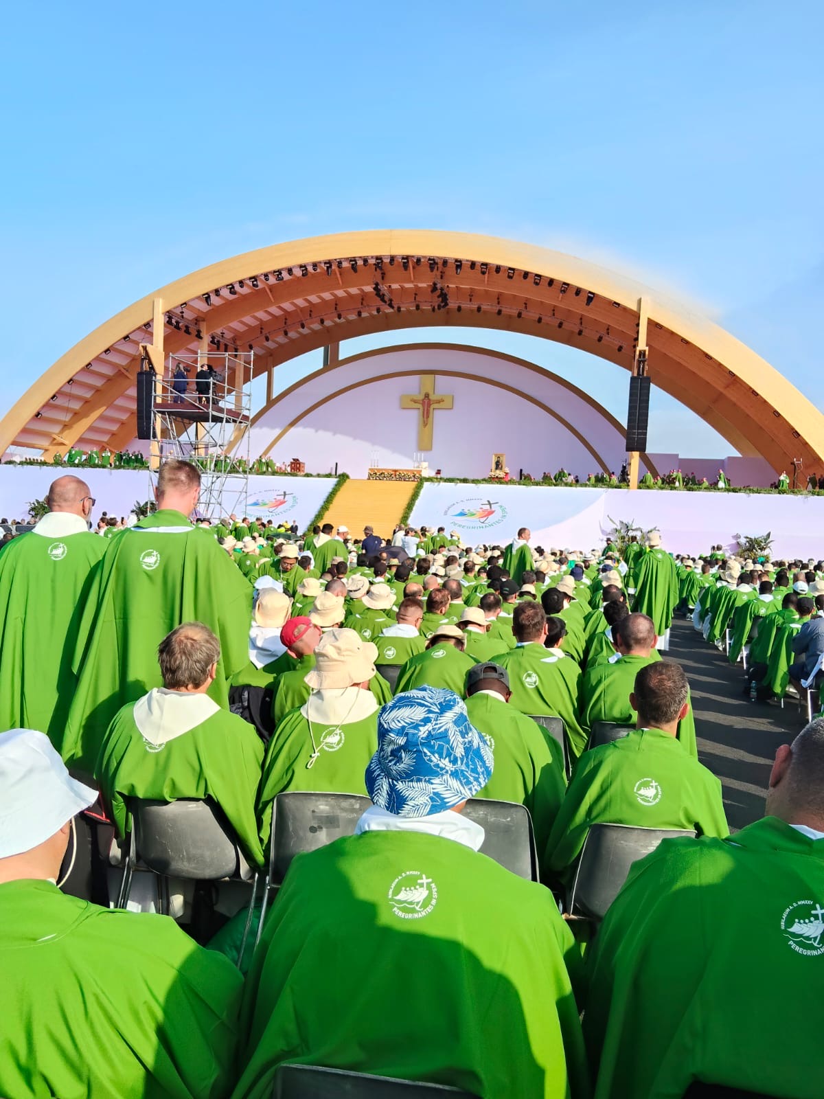 Alrededor de las seis de la mañana, la megafonía comenzó a sonar suavemente para despertar a los peregrinos con música y avisos de la organización. Sobre las ocho, el helicóptero del papa sobrevolaba la explanada, generando un silencio reverente que pronto se convirtió en ovación al verlo pasar en su papamóvil por una de las vías cercanas al sector donde descansaban los jóvenes de Salamanca. Fue un instante fugaz pero profundamente significativo.