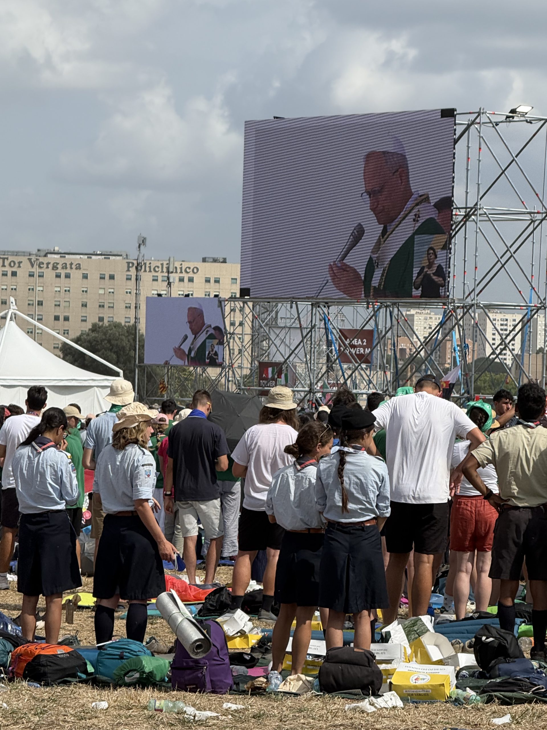 Tras pasar la noche en Tor Vergata junto a miles de jóvenes, durmiendo sobre esterillas y en sacos de dormir, y con algo de lluvia que les sorprendió de madrugada, los 48 peregrinos de la diócesis de Salamanca participaron en la misa final del Jubileo de los Jóvenes, presidida por el papa León XIV. La explanada se transformó en un auténtico templo al aire libre, escenario de una celebración marcada por la esperanza y la fraternidad.