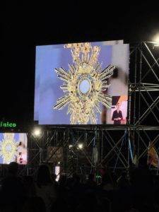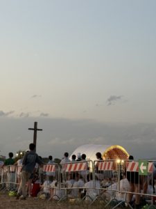 A medida que fue cayendo la noche, se fue creando una atmósfera de comunión. Tras la adoración al Santísimo, se escuchó el Magnificat cantado por miles de voces. Fue un gesto profundo de alabanza y entrega, compartido desde el corazón de la Iglesia joven.