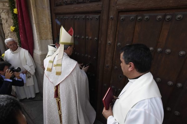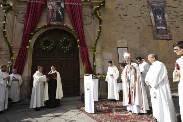 El Obispo de Salamanca, Mons. Carlos López, inauguró el pasado 15 de octubre, solemnidad de Santa Teresa de Jesús, el esperado Año Jubilar Teresiano concedido por el Santo Padre al templo en el que se encuentra el sepulcro de la Santa en Alba de Tormes. La apertura de la Puerta Santa de la iglesia de las Carmelitas y la celebración de una solemne Eucaristía marcaron el inicio de este año Santo que se va a prolongar hasta el 15 de octubre de 2018.