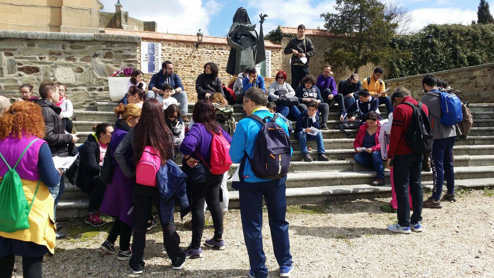 Más de cuarenta peregrinos participaron el sábado 14 de abril en el JUBILEO TERESIANO DE LAS COFRADÍAS, una jornada marcada por la fraternidad entre los participantes, miembros de diversas hermandades de nuestra diócesis. A las 9.30 h, junto al sitio histórico de los Arapiles, un grupo de treinta y ocho emprendía su “Camino pascual con Teresa de Jesús… Resucitado”, realizando tres paradas en las que se recorrió el relato de Emaús completado por textos de Teresa. La vía verde, a lo largo de una quincena de kilómetros, era escenario de animadas conversaciones entre praderas y encinares en una espléndida mañana. La meta, el Sepulcro de La Santa en Alba de Tormes, se alcanzaba poco antes del comienzo de la Misa del Peregrino, presidida por Florentino Gutiérrez, Vicario General de la Diócesis, y concelebrada por uno de los párrocos de la villa y los capellanes de Jesús Flagelado, Oración en el Huerto, Silencio y Vera Cruz de la capital salmantina. Asistió un notable grupo de cofrades albenses, encargados de proclamar las lecturas y moniciones. Don Florentino, en su homilía, planteó que la renovación de la pastoral cofrade hallaría buenos cimientos en la reforma teresiana: la oración, la Eucaristía, los hermanos. Acabada la Misa, en la que los fieles pudieron obtener la indulgencia plenaria conforme a las condiciones habituales, se dio a venerar una reliquia de Santa Teresa. Una apetitosa paella permitía a los caminantes recuperar fuerzas, antes de visitar el Museo Carmus guiados por fray Miguel Ángel, prior de los carmelitas descalzos albenses, que se mostró muy entusiasta de la religiosidad popular, explicando además que esa afinidad la demostraron Teresa y Juan de la Cruz. A las 18.30 h se emprendía regreso a Salamanca, compartiendo la sensación de que la jornada jubilar había logrado su propósito y de que iniciativas similares pueden contribuir a seguir estrechando lazos entre los cofrades salmantinos.