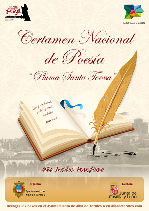 El Ayuntamiento de Alba de Tormes recupera el Concurso Nacional de Poesía ‘Pluma Santa Teresa’ con ocasión del Año Jubilar Teresiano. El plazo de presentación de obras concluye el 15 de septiembre de 2018. Las bases del concurso están disponibles en la web: del consistorio http://albadetormes.com