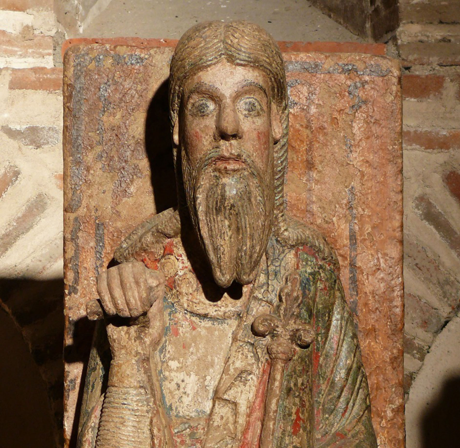 Terminamos el Año Litúrgico celebrando la solemnidad de Cristo Rey. En nuestra diócesis una de las representaciones artísticas más sobresalientes y llamativas de esta iconografía la contemplamos en el ábside mudéjar de la iglesia de San Juan de Alba de Tormes. Cristo aparece en el centro, sentado en el trono real, y rodeado de los doce apóstoles a ambos lados. Las trece figuras están talladas en piedra y fueron policromadas, aunque el desgaste corrobora que se encontraban originalmente situadas en el exterior, posiblemente sobre la puerta de la desaparecida iglesia del Salvador. El hieratismo de las figuras, los ojos excesivamente abiertos, su posición frontal, los ropajes pegados al cuerpo y los rostros alargados son propios del estilo románico del siglo XII, aunque se percibe ya un avance del artista por querer humanizar a los personajes con rostros distintos.