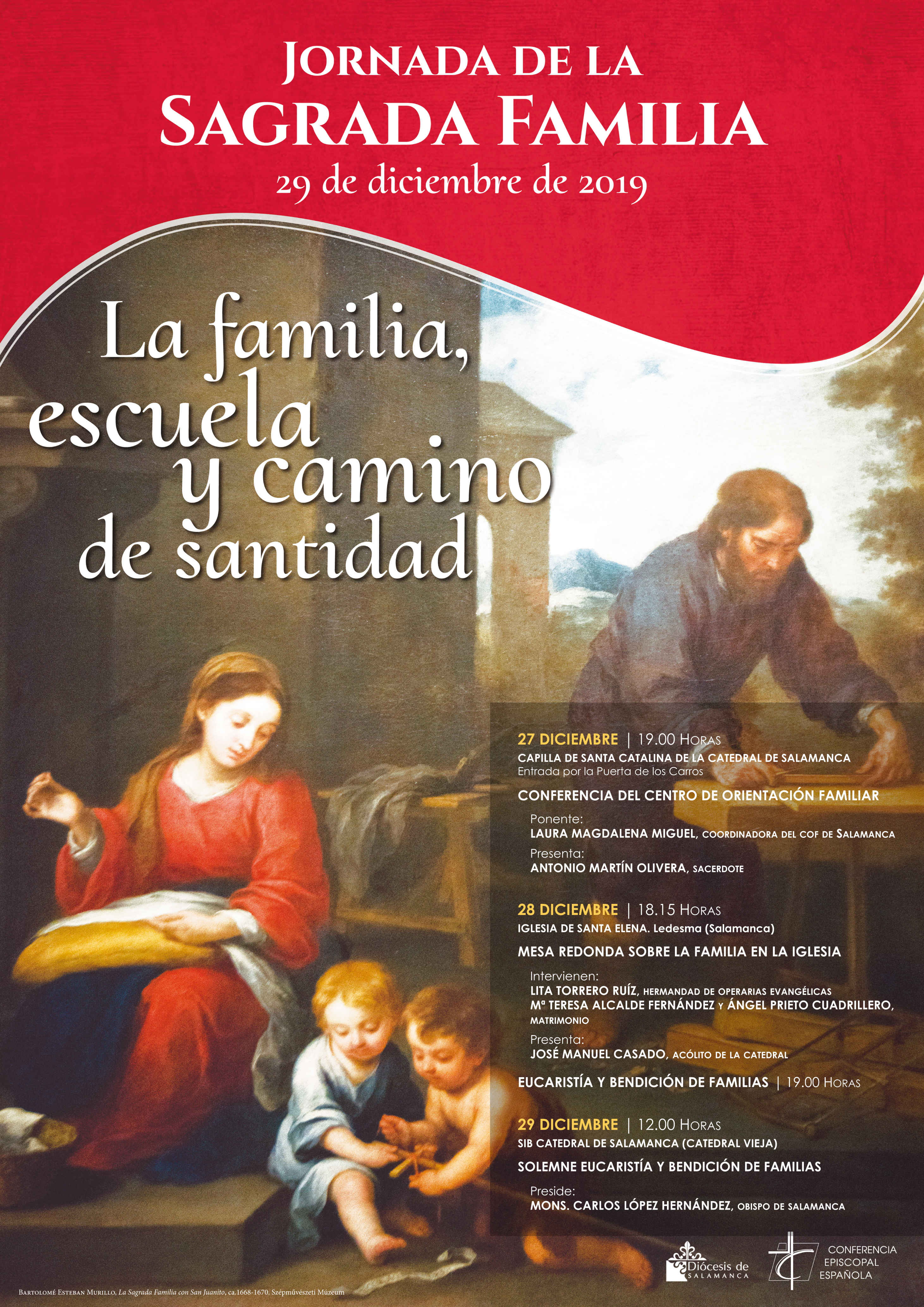 El domingo 29 de diciembre celebraremos la Jornada de la Sagrada Familia, este año con el lema: “La familia, escuela y camino de santidad”. Como cada año la Subcomisión Episcopal para la Familia y la Defensa de la Vida, dentro de la Comisión Episcopal de Apostolado Seglar, ha editado diferentes materiales para preparar esta jornada, entre los que se encuentra el mensaje de los obispos que integran esta Subcomisión, el subsidio litúrgico de la jornada, una estampa con una oración para rezar por las familias y un folleto de oración para rezar en familia los días de Navidad (25 de diciembre), Sagrada Familia (29 de diciembre), Santa María Madre de Dios (1 de enero) y Epifanía (6 de enero).