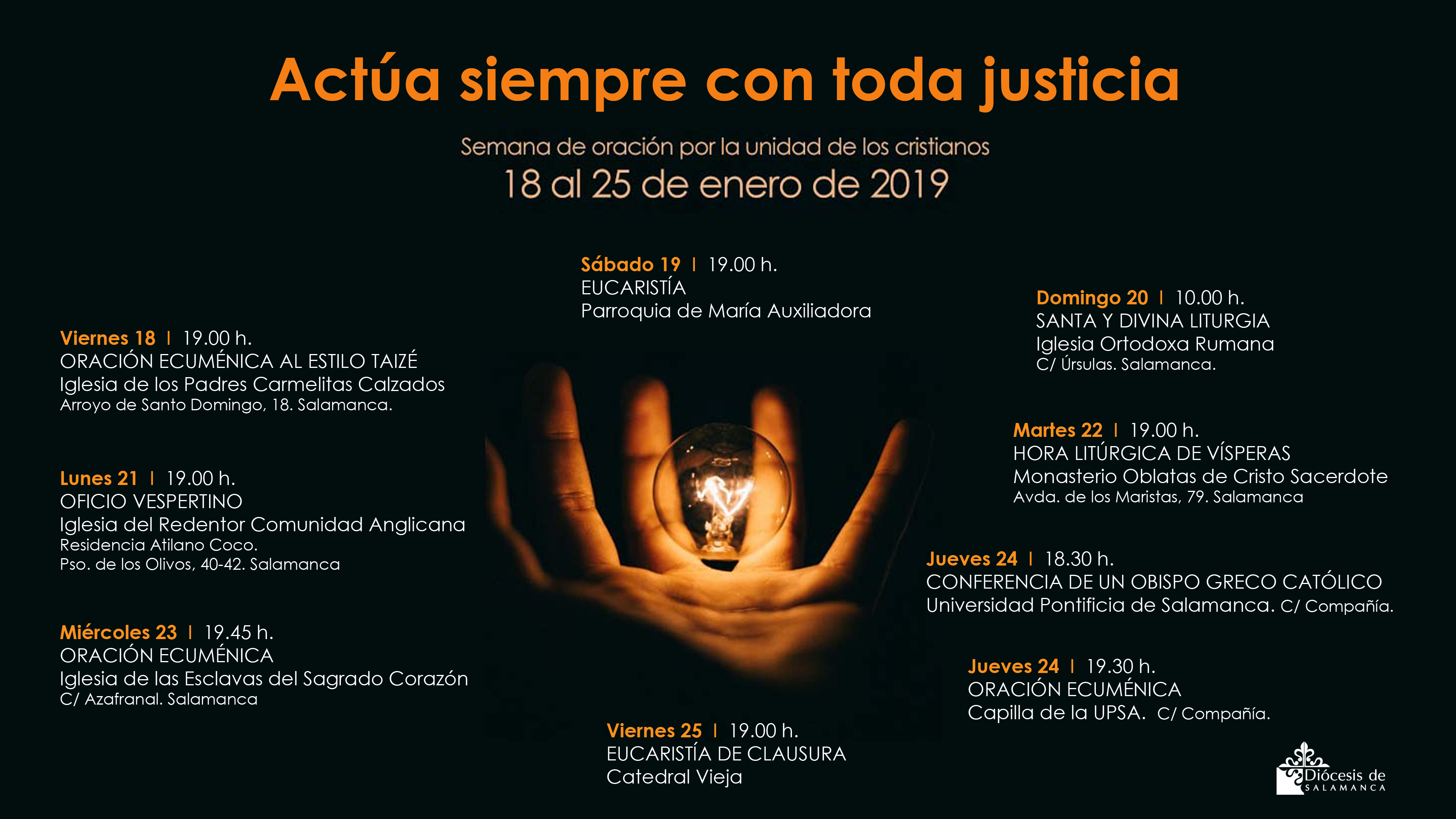 En la Diócesis de Salamanca hemos preparado el siguiente calendario de celebraciones para la Semana de Oración por la Unidad de los Cristianos: