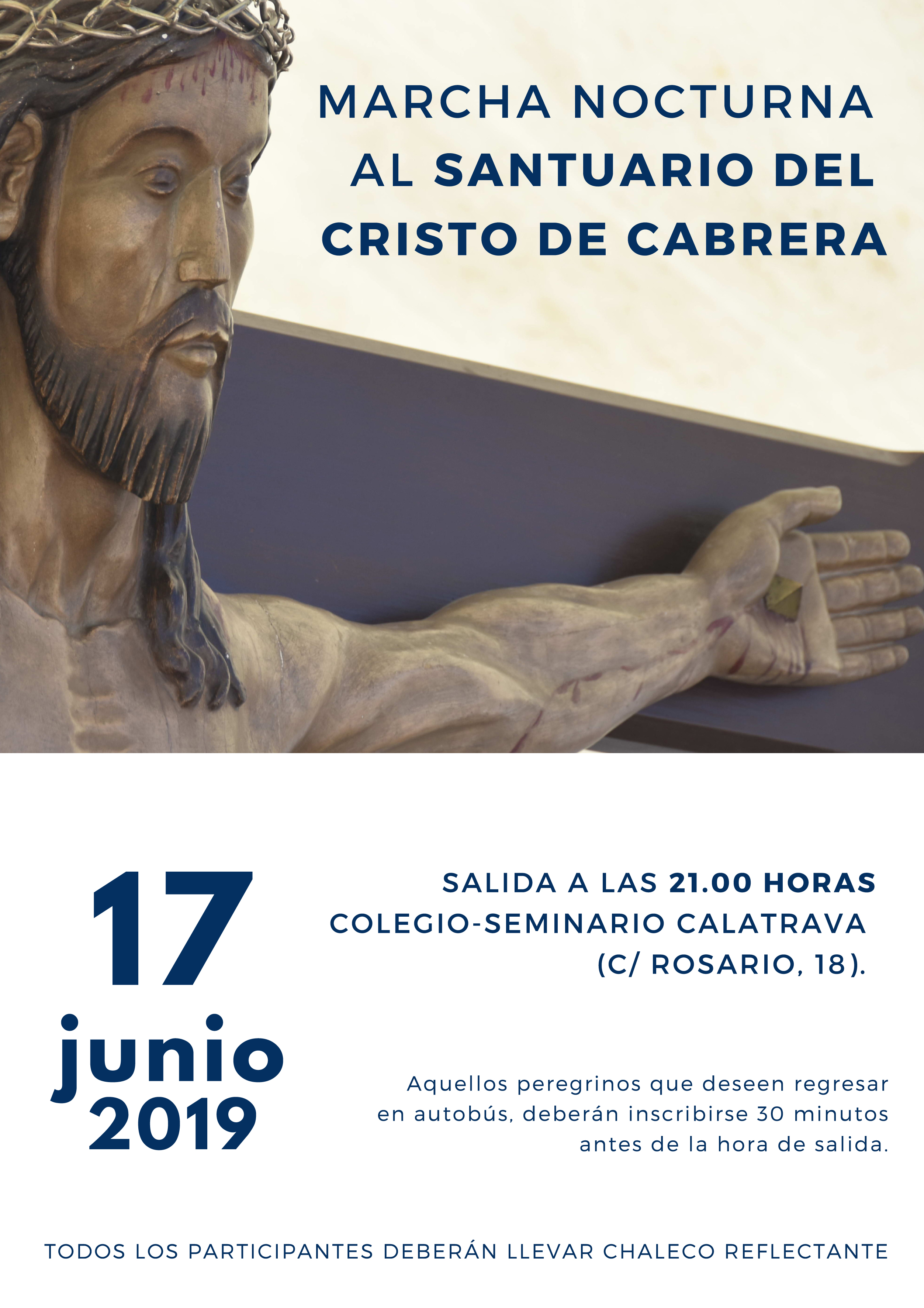 Desde hace más de 30 años la víspera de la fiesta (17 de junio) se celebra una marcha nocturna, a pie, hasta al Santuario de Cabrera que parte desde el Colegio-Seminario Calatrava (C/ Rosario, 18), a las 21.00 horas. A su llegada, los peregrinos participarán en la primera eucaristía de la jornada, a las 5.30 de la mañana. Aquellos que quieran regresar en autobús, deberán inscribirse media hora antes de la salida.