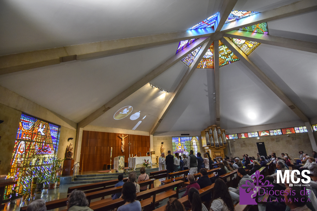 Así, el obispo Mons. José Luis Retana presidirá una misa de acción de gracias, a las 20:30 horas, que contará con la animación de los coros Tomás Luis de Victoria y el parroquial. Previamente, a las 19:15 horas, está prevista la proyección de un vídeo con testimonios como el del actual arzobispo emérito de Toledo, Mons. Braulio Rodríguez Plaza, en aquel entonces obispo de Salamanca; el del sacerdote Jesús Terradillos, anterior delegado diocesano de Obras, y el de su primer párroco, Jesús Vicente Sánchez.