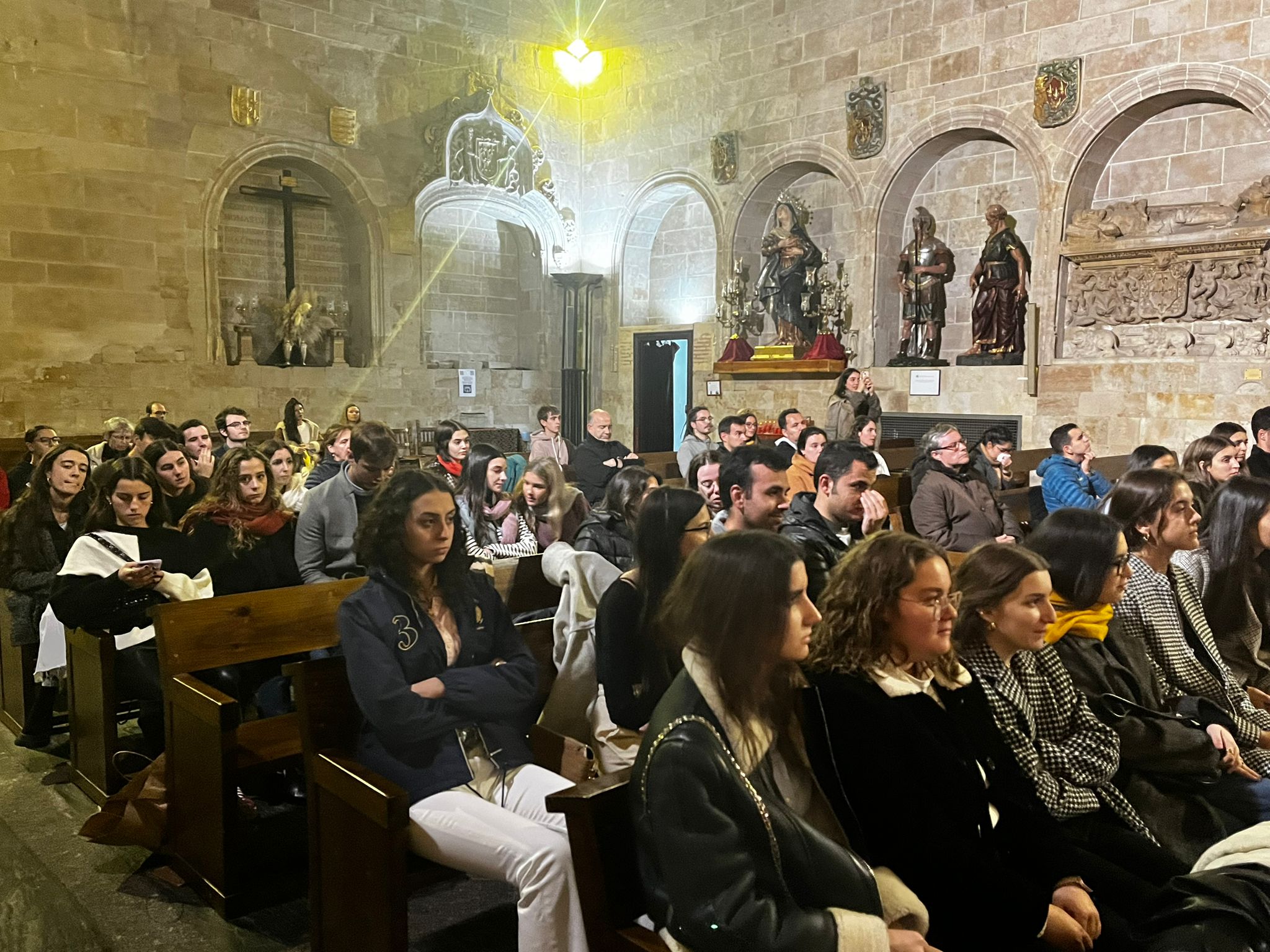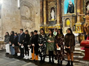 El pasado domingo 6 de noviembre, la misa universitaria acogió el rito de inicio del catecumenado de Confirmación. El proceso de preparación se realiza de manera conjunta y coordinada en la Delegación diocesana de Pastoral Universitaria y en la Capellanía de la Universidad Pontificia, en donde el P. Fernando Garrapucho anima a un grupo del Colegio Mayor Guadalupe y de la Facultad de Educación. Veinticinco jóvenes de ambas instituciones iniciaban a mitad de octubre las reuniones de preparación.